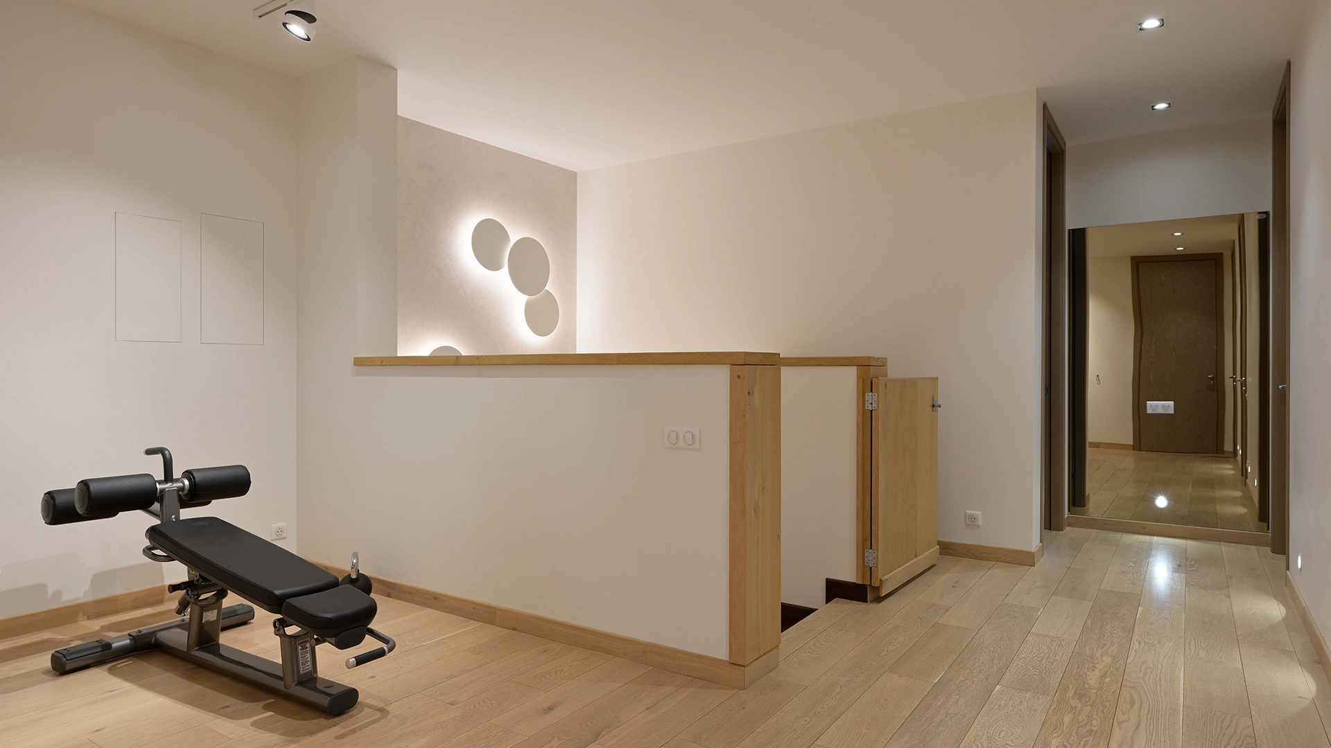Функциональная планировка включает просторную кухню-гостиную 51 м² с обеденной зоной, ванную комнату, постирочную, гардеробную и холл на первом уровне. На втором этаже спланированы мастер-спальня со своим санузлом и гардеробной, 3 спальни, санузел, спортзал и холл. Панорамные окна ориентированы на две стороны, открываются виды на благоустроенную территорию комплекса.