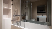 Световые приборы Flos управляются по протоколу Dali и интегрированы в систему автоматизации KNX, система автоматически регулирует освещение в зависимости от вашего местоположения и сценариев. В детских спальнях спроектированы «парящие кровати», выдерживающие до 400 кг нагрузки. Санузлы оборудованы современными унитазами Toto. Управление шторами и жалюзи возможно как вручную, так и дистанционно с телефона.