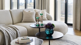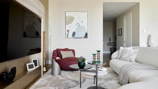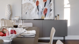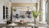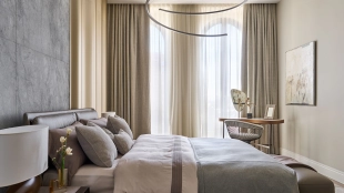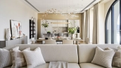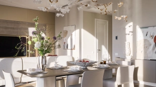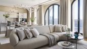 Функциональная планировка включает просторную кухню-гостиную с обеденной зоной, 2 спальни со своими санузлами и гардеробными, гостевой санузел, постирочную и холл. Благодаря панорамному остеклению пространство наполнено естественным светом и теплом, окна ориентированы на две стороны, открываются виды на башни «Москва-Сити», Москву-реку и благоустроенную территорию двора.