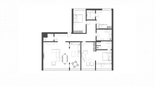Квартира укомплектована мебелью и бытовой техникой. Функциональная планировка включает кухня-гостиная с обеденной зоной, 2 спальни со своими санузлами, третью спальню, две гардеробные, лоджию и холл. Благодаря панорамному остеклению пространство наполнено естественным светом, окна ориентированы на четыре стороны.