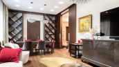 Просторная квартира с 2-мя спальнями общей площадью 102 м² в комплексе делюкс-класса «Дом на Смоленской» на 3-м этаже. Выполнена дизайнерская отделка в современном стиле с использованием премиальных материалов. Квартира укомплектована мебелью и бытовой техникой Neff. Установлена система индивидуального кондиционирования.