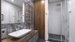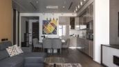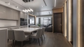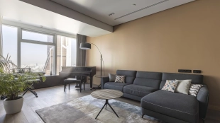 Апартаменты с 1-й спальней площадью 126 м² в башне «Империя» на 44-м этаже. Выполнена премиальная отделка с использованием натуральных материалов. Благодаря панорамному остеклению пространство наполнено естественным светом и теплом, открываются виды на город и башни «Москва-Сити».