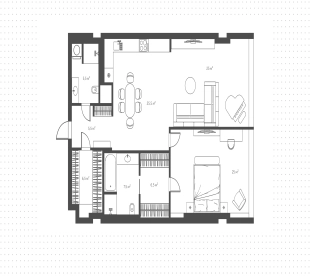 Апартаменты полностью меблированы и укомплектованы бытовой техникой. Функциональная планировка включает просторную кухню-гостиную, спальню с собственной ванной комнатой и гардеробной, гостевой санузел с тропическим душем и прихожую с гардеробной.