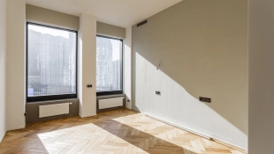Установлены системы канального кондиционирования, проточной вентиляции, «чиллер-фанкойл», внутрипольные конвекторы и «теплый пол». Функциональная планировка включает кухню-гостиную, мастер-спальню с рабочей зоной и гардеробной, гостевую спальню со встроенным шкафом, 2 санузла и прихожу. Окна ориентированы на две стороны, открываются виды на благоустроенную территорию комплекса.