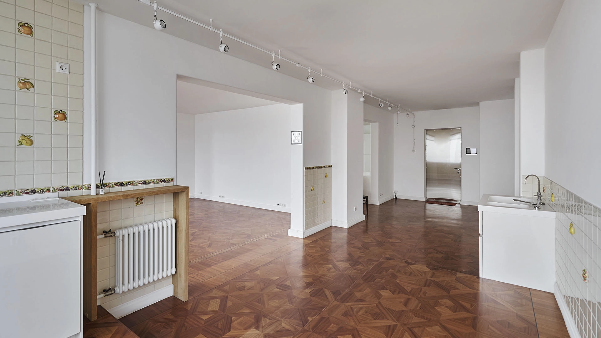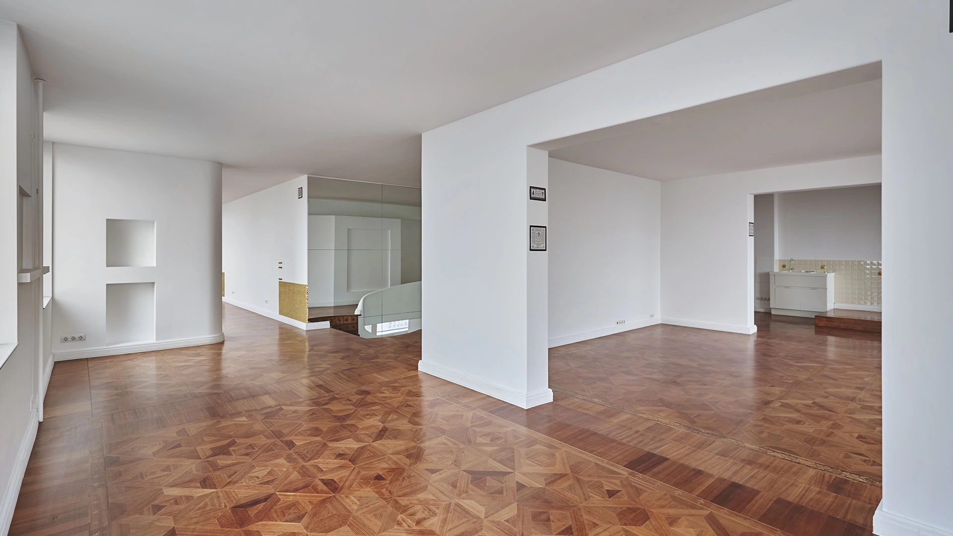 Кухня из Италии оборудована бытовой техникой Gaggenau. Установлены системы очистки и накопления воды, отопления и водоснабжения. Открытая планировка позволяет организовать пространство по собственному усмотрению. Возможно спланировать: гостиную, кухню-столовую, 3 спальни, кабинет, библиотеку, три санузла, гардеробную, 2 балкона и холл. Из окон открываются панорамные виды на город.