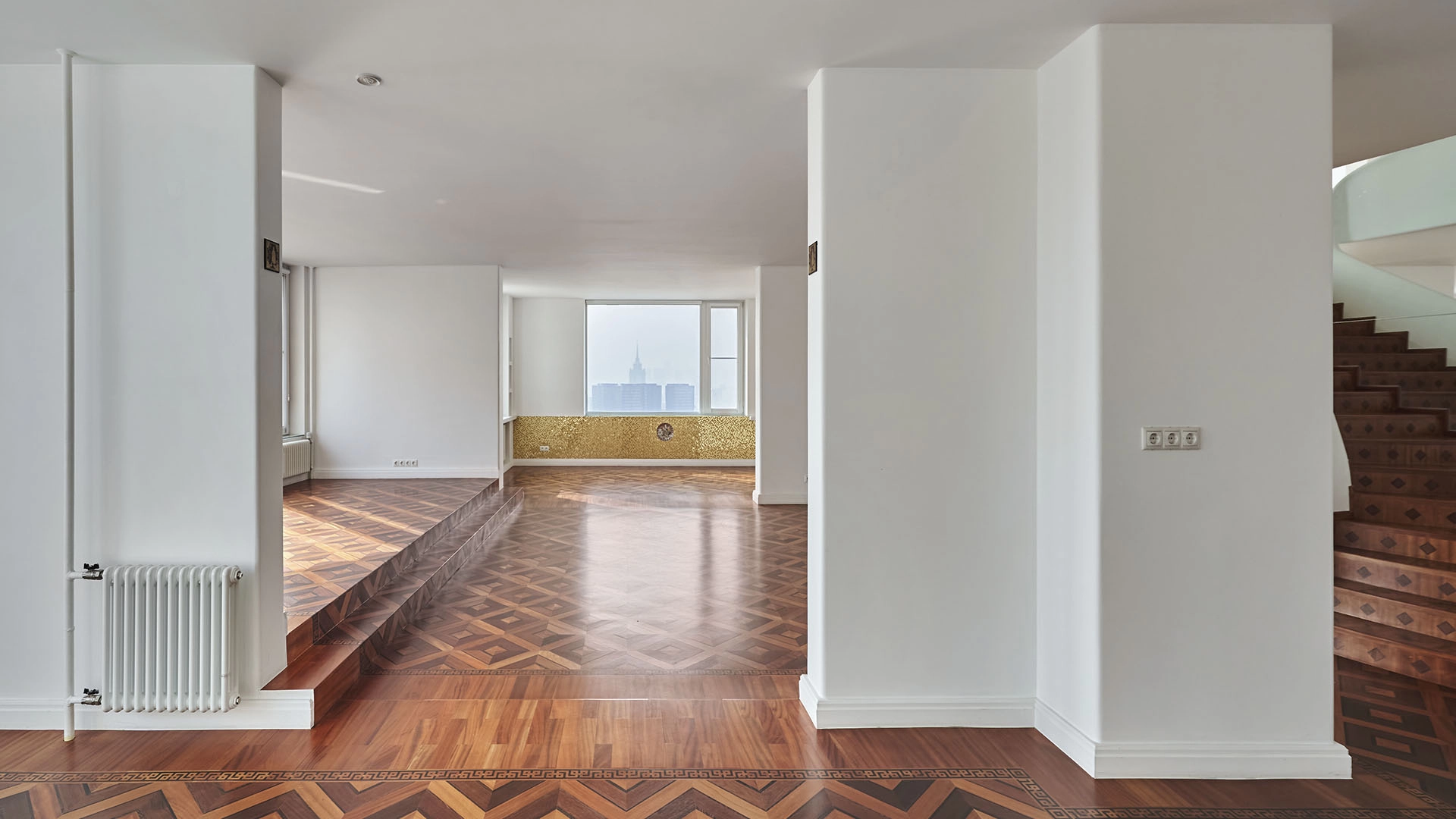 Видовой пентхаус в комплексе премиум-класса «Зоологическая, 22». Пентхаус общей площадью 263 м² расположен на 24-м и 25-м этажах. Выполнена дизайнерская отделка в светлых тонах, на полу выложен штучный паркет. Пространство наполнено естественным светом благодаря большому количеству окон и высоким потолкам — 3 метра.