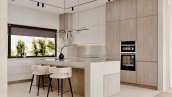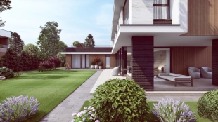 Загородная резиденция площадью 648 м² построена на участке 12,2 сотки. Фасад здания с большой площадью остекления выполнен в современном стиле, отделан темным клинкером и покрытиями с фактурой камня и дерева. В доме без отделки можно реализовать индивидуальный дизайн-проект. Планировкой предусмотрены несколько спален, гостиная, кухня и места для отдыха. На просторной террасе можно обустроить зону барбекю.