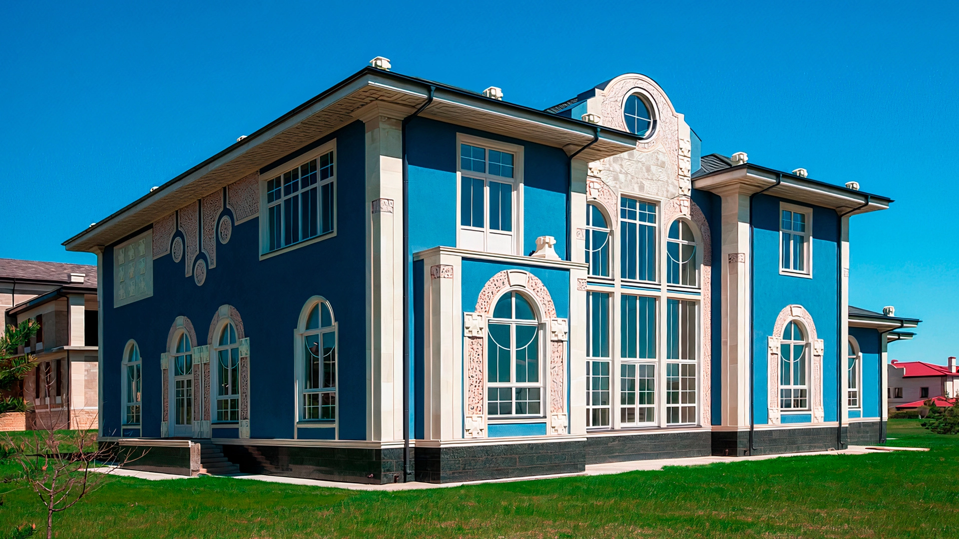 Каждый дом выполнен в индивидуальной архитектурной стилистике, при этом все резиденции гармонично сочетаются между собой. Площади домов начинаются от 800 м², а участки – от 68 соток до 1,5 гектаров.