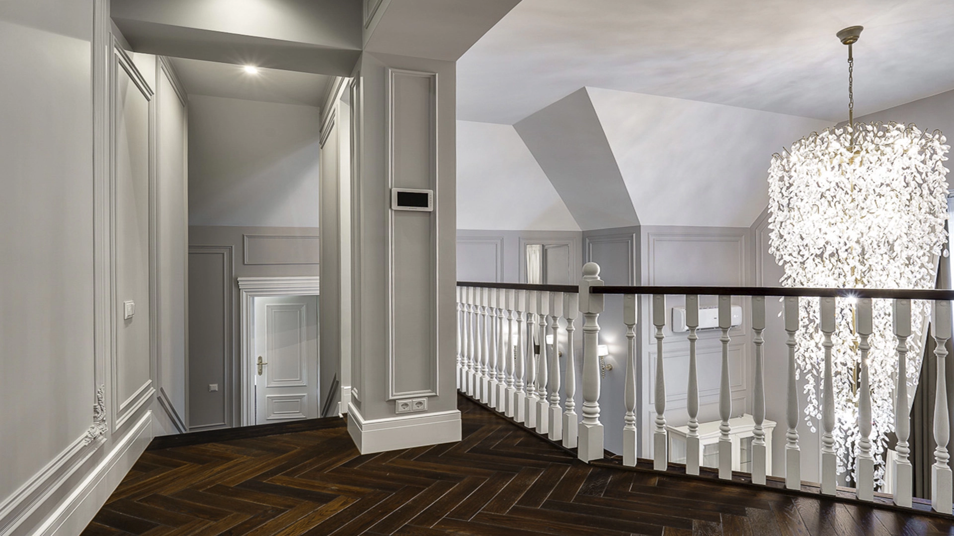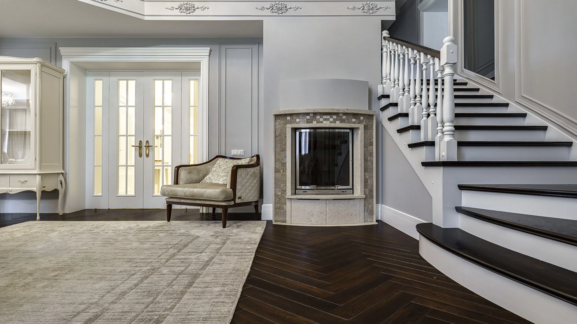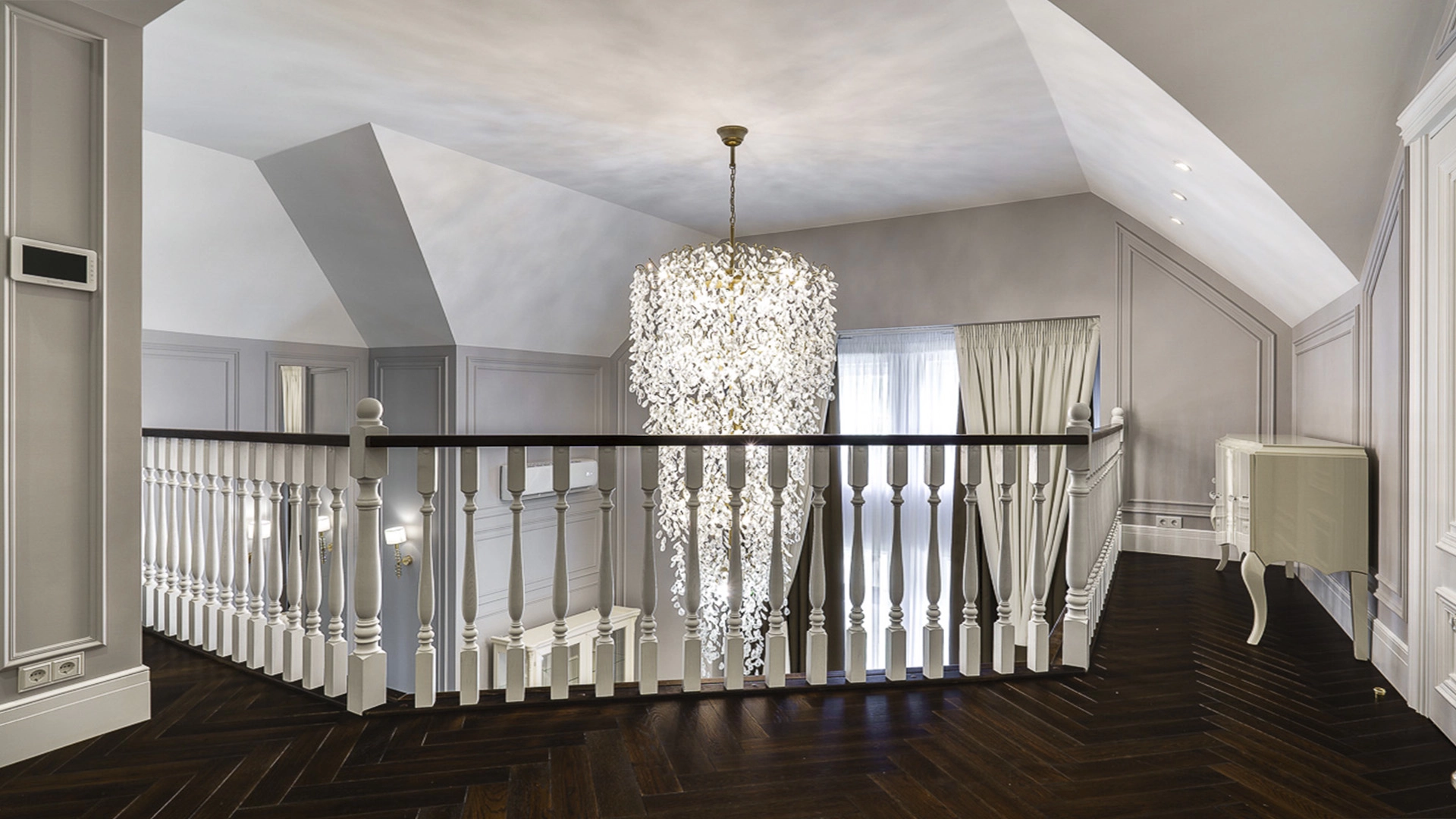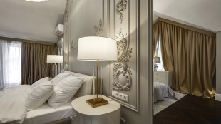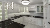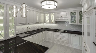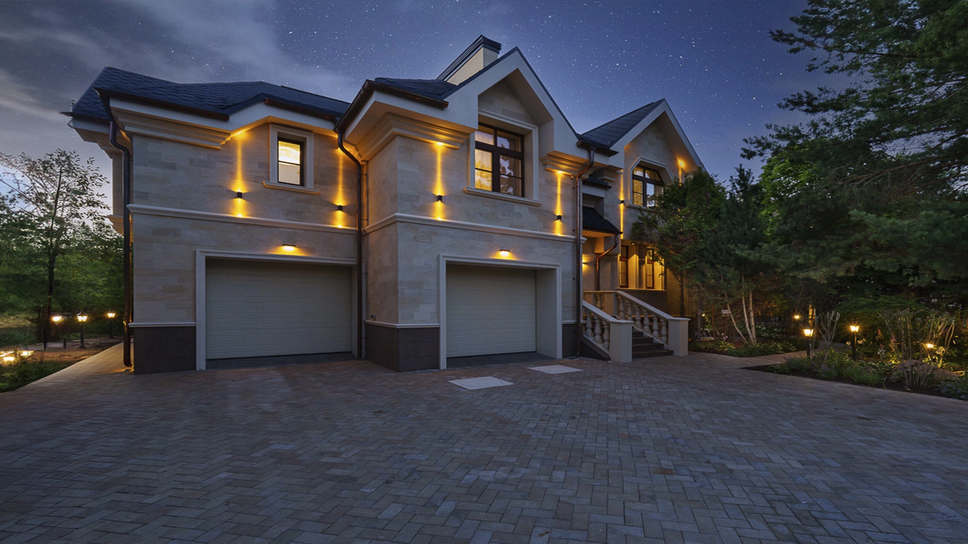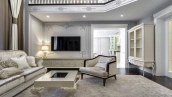 Новый загородный дом площадью 360 м² расположен на прилесном участке 14,7 соток. Фасад выполнен в современном стиле и облицован натуральным камнем. Светлый интерьер с элементами классики оформлен при помощи высококачественных материалов, таких как мрамор и паркетная доска из натурального дуба.