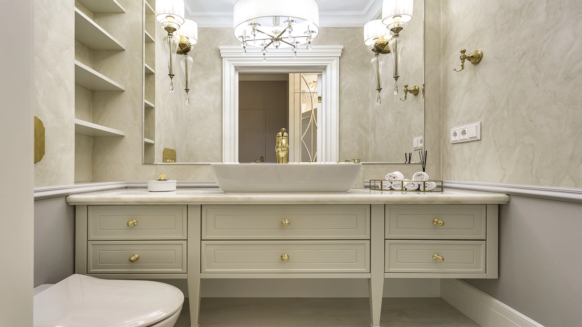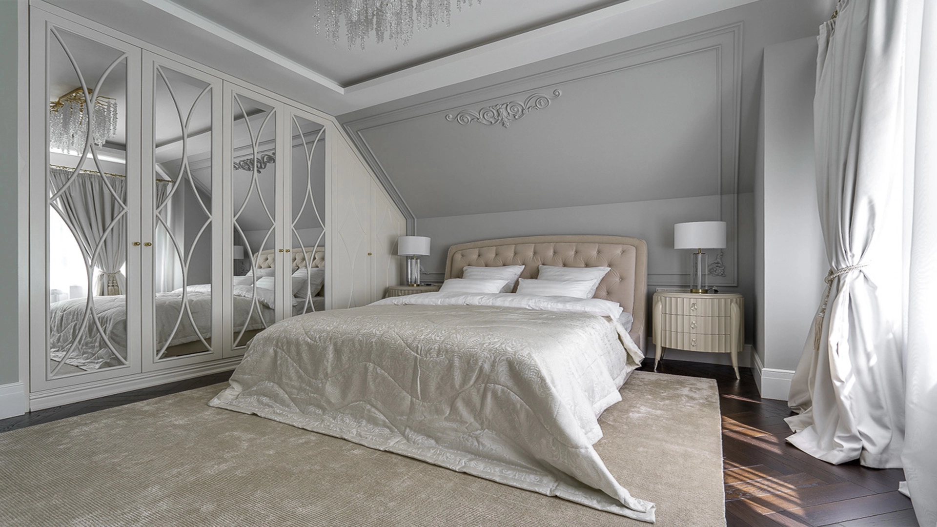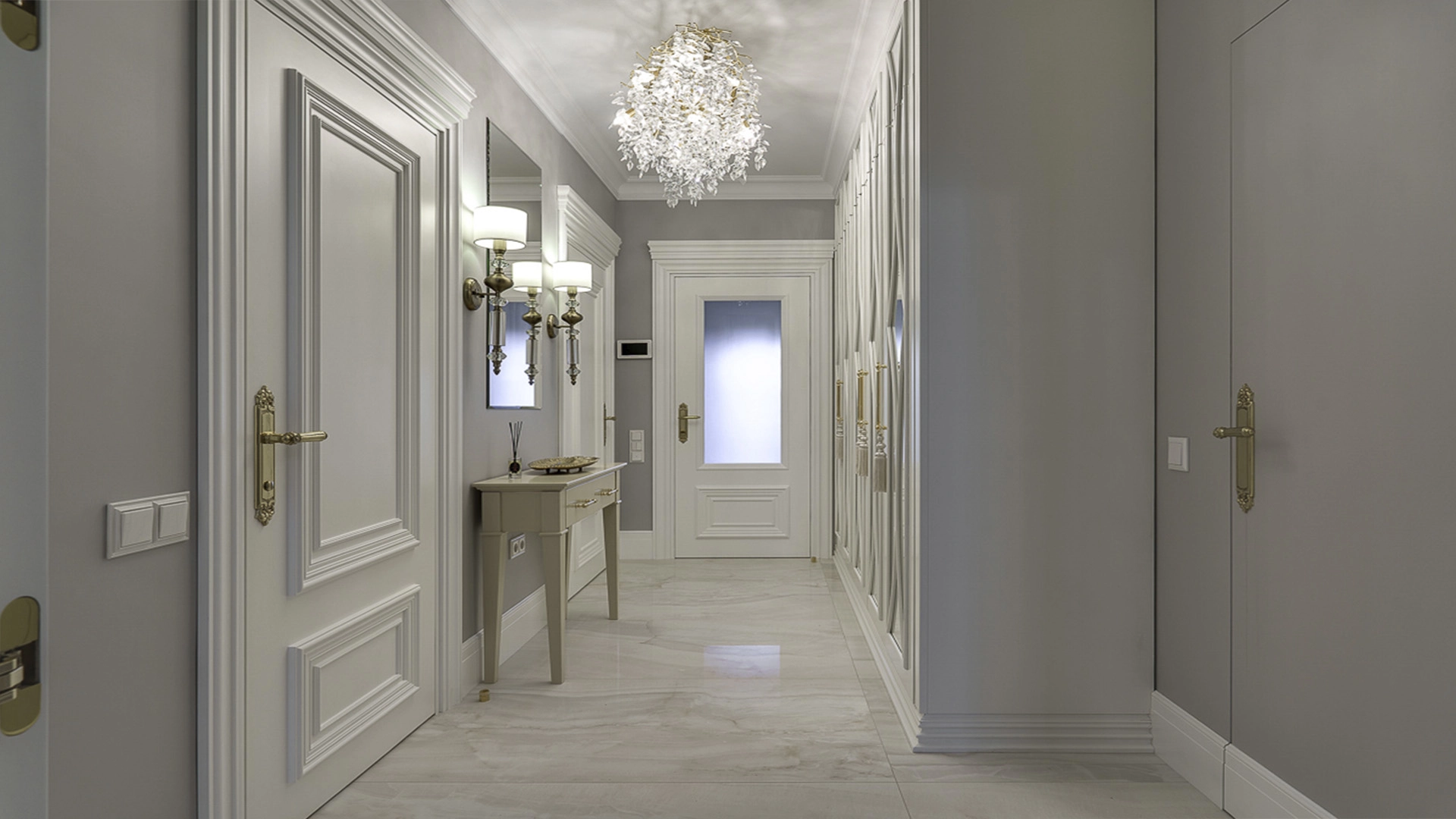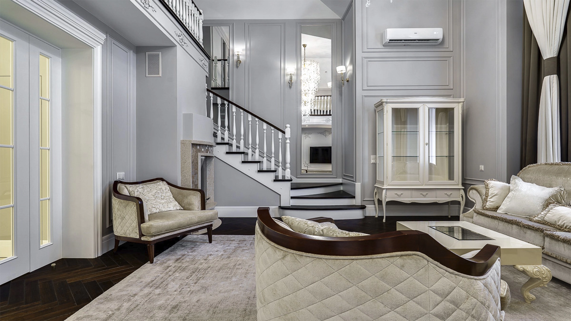 Новый загородный дом площадью 360 м² расположен на прилесном участке 14,7 соток. Фасад выполнен в современном стиле и облицован натуральным камнем. Светлый интерьер с элементами классики оформлен при помощи высококачественных материалов, таких как мрамор и паркетная доска из натурального дуба.