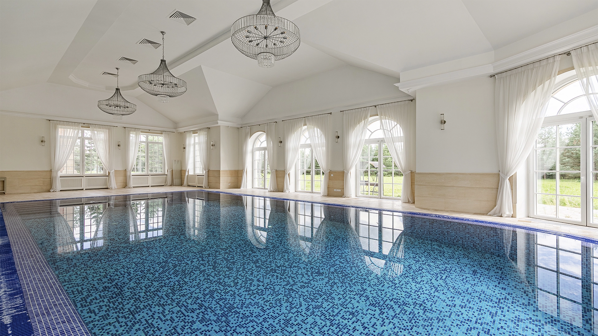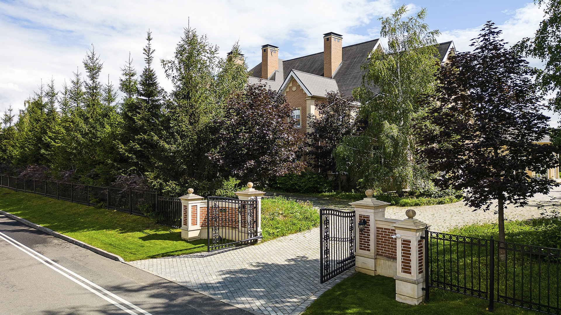 Загородная резиденция площадью 2141 м² расположена на участке 61 сотка. Фасад с рустовкой, изящными колоннами и многоскатной крышей выполнен в европейском стиле. Интерьер с элементами неоклассики оформлен в светлых тонах и дополнен элегантной мебелью и техникой премиальных брендов. В четырехэтажном доме спланировали гостиную с камином, наполненную воздухом благодаря второму свету, 7 спален, кабинет, бассейн, хаммам и сауну. Также в доме предусмотрен гараж на 3 автомобиля и лифт для комфортного перемещения между этажами. На участке проведены ландшафтные работы, засеян газон, вымощены дорожки, растут деревья и кустарники.