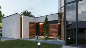 В двухэтажном коттедже спланировали наполненную воздухом гостиную со вторым светом, кухню-столовую с выходом на террасу, 4 спальни, кабинет, блок для персонала и гараж на 2 машины. На участке выполнен ландшафтный дизайн, засеян газон, высажены деревья и кустарники, вдоль вымощенных брусчаткой дорожек оборудовано уличное освещение.