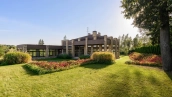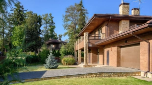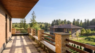 На просторном участке можно организовать места для отдыха и установить уютную беседку с барбекю. По всей площади оформлен ландшафтный дизайн — выполнена посадка газона, сосен, елей, декоративных растений и «живой изгороди» из туй.