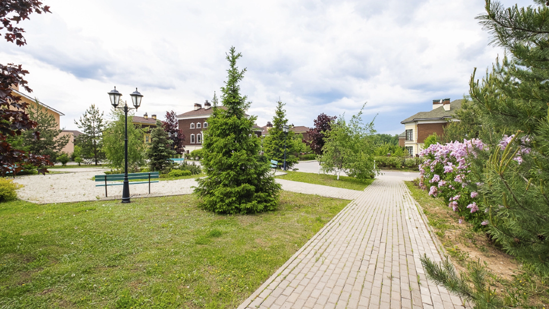 Посёлок утопает в зелени леса, дороги внутри асфальтированы и освещаются, есть прогулочные зоны и детская площадка.