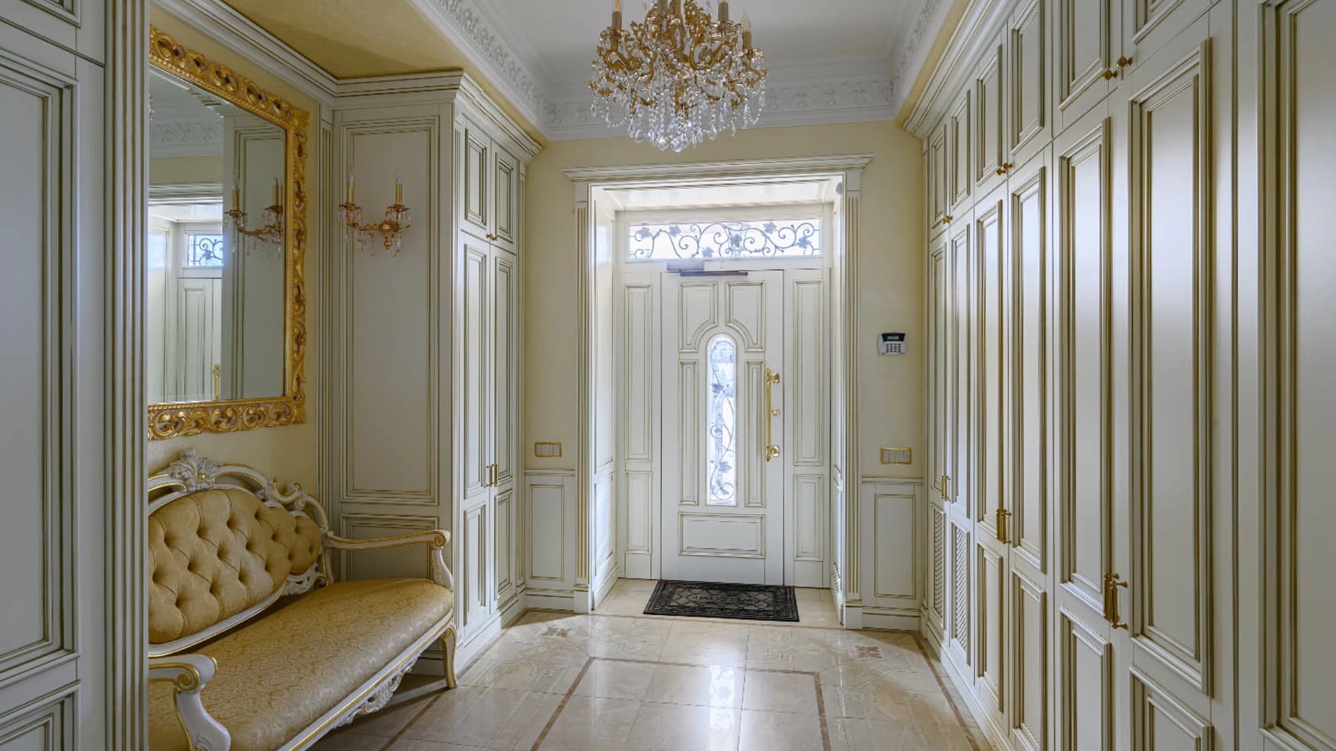 В двухэтажном коттедже спланировали 5 спален, кухню, столовую, гардеробную и балкон. Рядом с основным зданием построен дом для персонала площадью 250 м², в котором разместили гараж на 2 машины с мойкой, комнату для водителя, 2 спальни, кухню-столовую и технические помещения на цокольном уровне. Также на территории оборудованы теплица с обогревом, детская площадка Rainbow Play Systems USA, фонтан и скважина. В рамках ландшафтного дизайна на участке засеян газон, высажены плодовые деревья и кустарники, оборудованы скрытая музыка и подогрев крылец и дорожек, вымощенных брусчаткой.