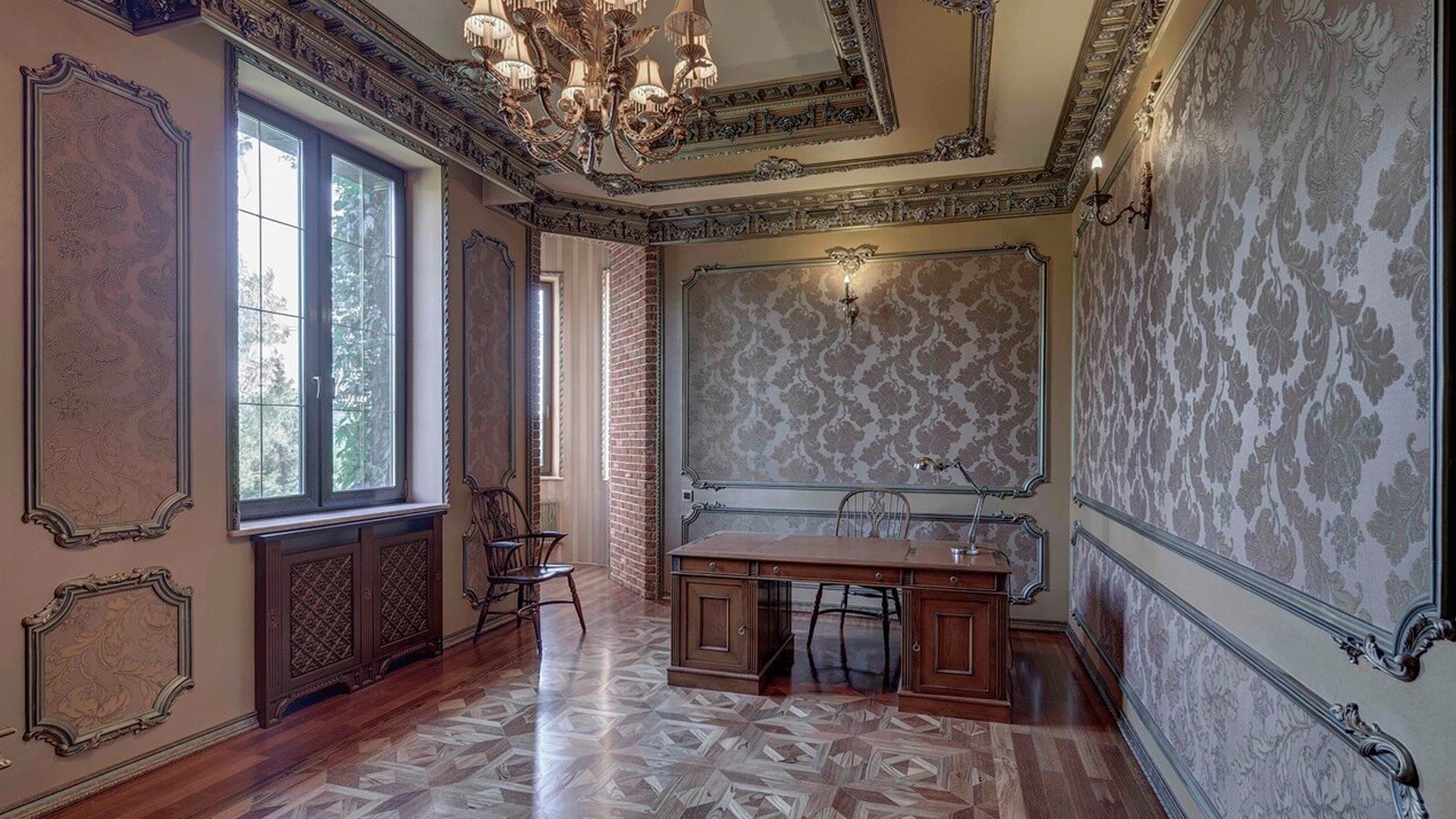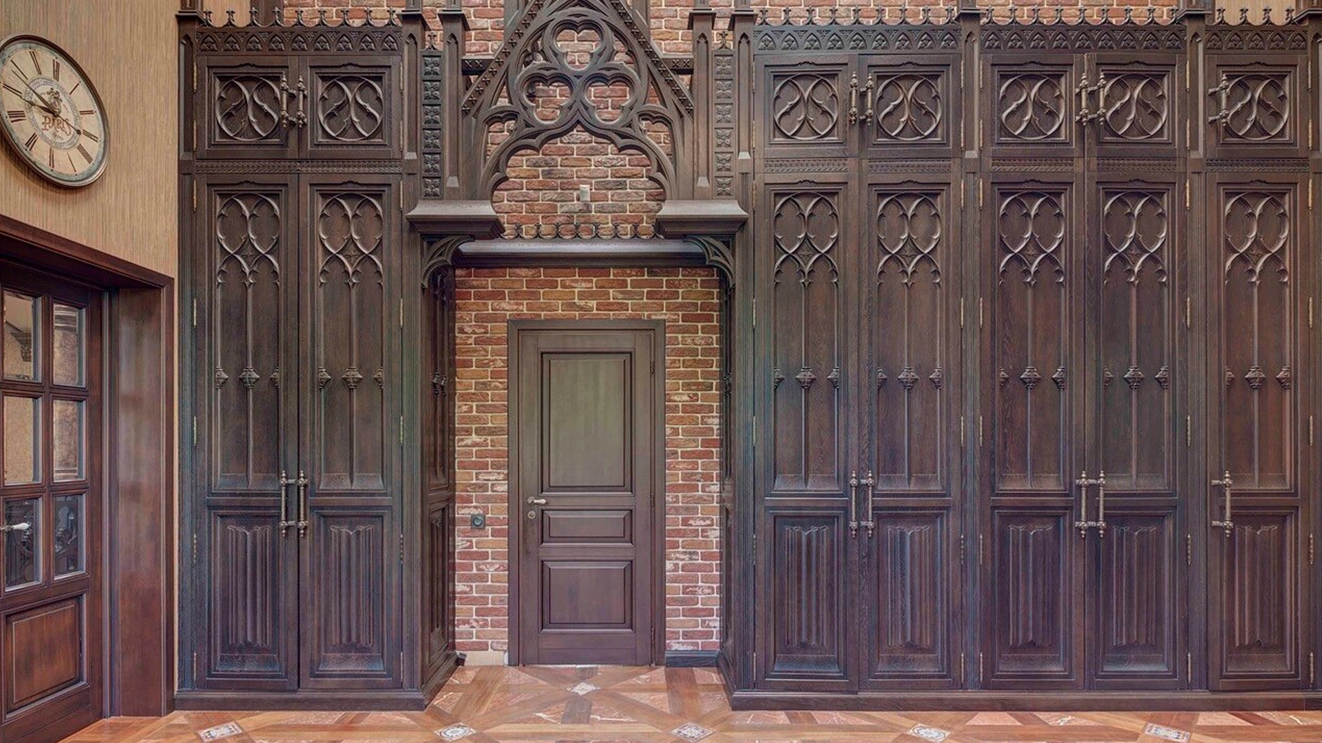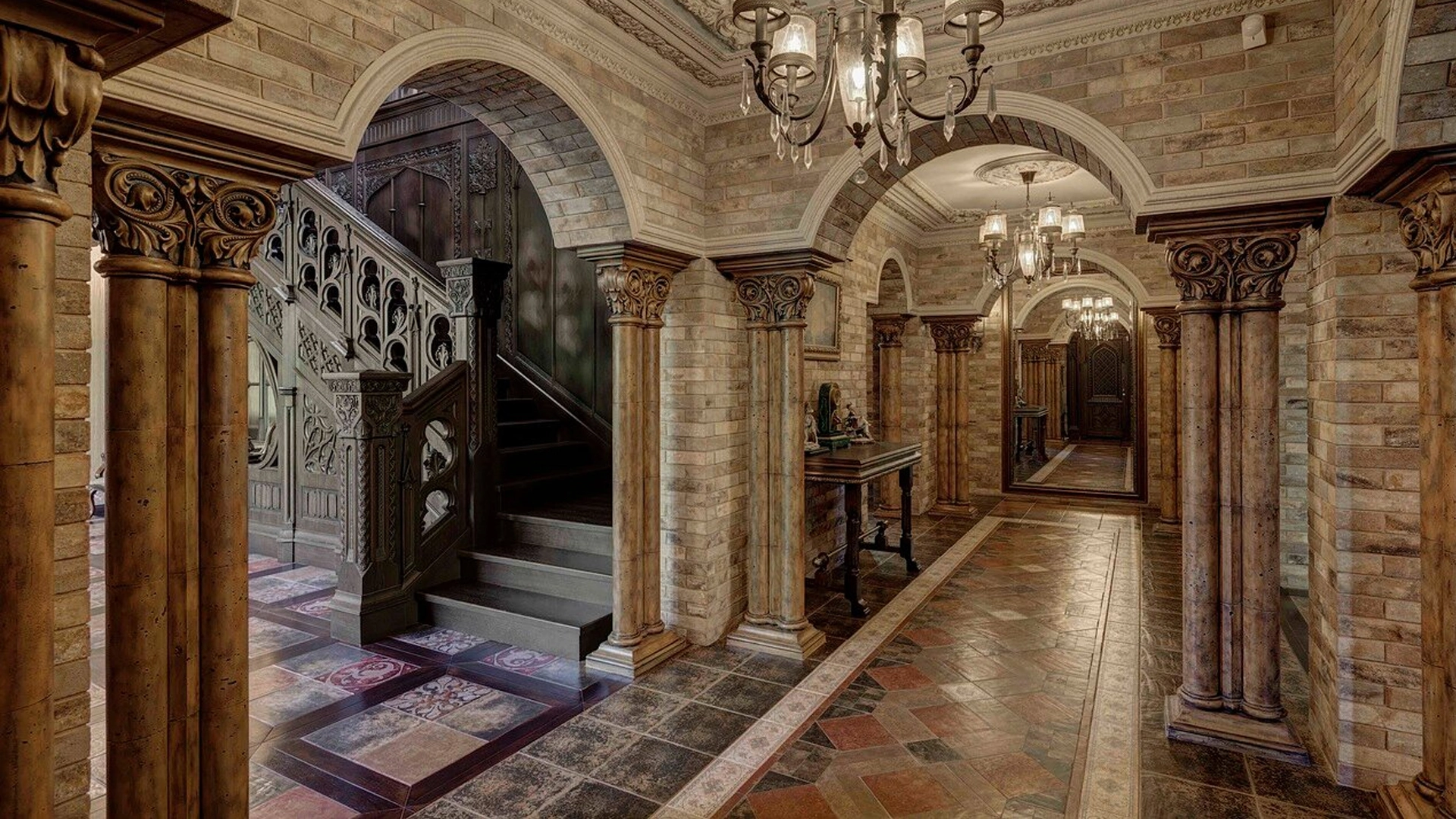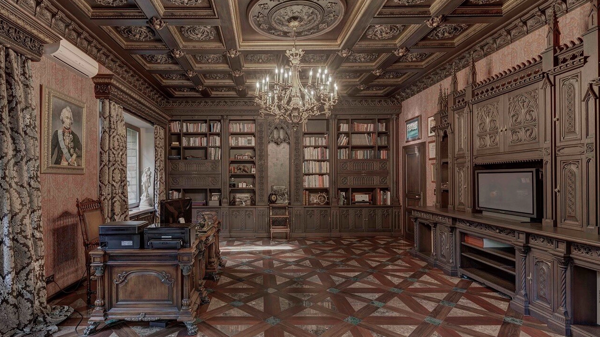 Премиальная загородная резиденция в стиле готического замка расположена на лесном участке 80 соток. Дом раскинулся на площади 2 500 м² — внутри выполнена эксклюзивная отделка с использованием натурального мрамора и дерева ценных пород. Резная деревянная мебель выполнена на заказ во Франции, Италии, Англии и США. В доме спланировано 5 спален с санузлами и гардеробными, просторные гостевые зоны, чистовая кухня, каминный зал, зимний сад, спа-зона с 20-метровым бассейном и тренажерный зал на мансардном этаже.
