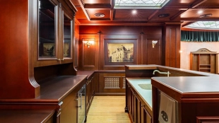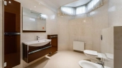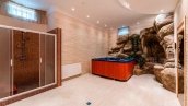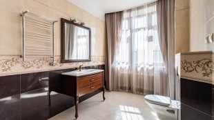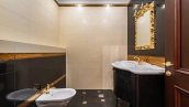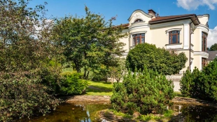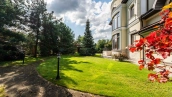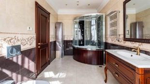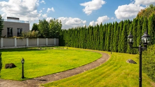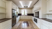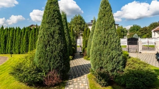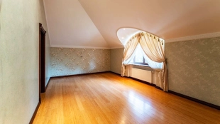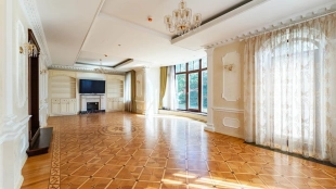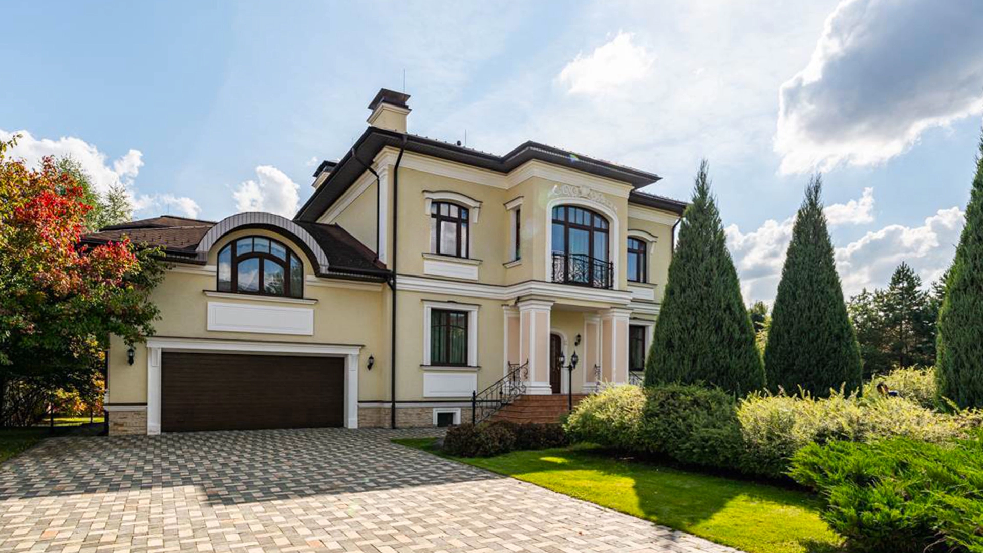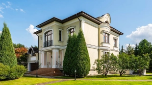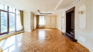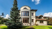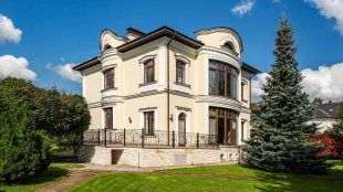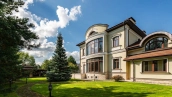 Резиденция площадью 800 м² с отделкой «под ключ» расположена на открытом участке 29 соток с живописным прудом. Фасад дома с большими окнами украшен лепниной и карнизом. На первом этаже расположена гостиная с камином и наборным паркетом на полу. На кухне — гарнитур в классическом стиле со встроенной техникой. На втором этаже при спальнях оборудованы гардеробные. На цокольном этаже бильярдная со стенными панелями из натурального темного дерева. На участке выполнен ландшафтный дизайн, посажен газон и декоративные кустарники, дорожки вымощены плиткой. Около главной резиденции построили дом 50 м² для персонала и дом отдыха с террасой-барбекю.