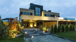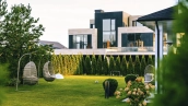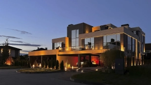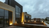 Трехуровневый таунхаус площадью 263 м² расположен на уютном полевом участке 3,7 соток. Современный фасад выдержан в элегантной черно-белой гамме и облицован плиткой с фактурой камня. Стильная подсветка подчеркивает архитектуру здания, а панорамные окна в пол наполняют внутреннее пространство естественным светом и создают эффект единства с окружающим пейзажем.