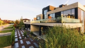 Трехуровневый таунхаус с современным фасадом на уютном участке, 263 м²