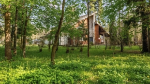 Двухэтажный коттедж с панорамными окнами около леса, 50 соток