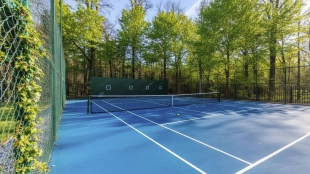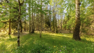Просторный и живописный участок площадью 50 соток подходит для строительства загородного дома со SPA-комплексом и гаражом. На территории со взрослыми хвойными деревьями выполнены ландшафтные работы — посеян газон, высажены туи, установлен фонтан, проложены дорожки и организовано уличное освещение. Здесь также есть двухэтажный коттедж площадью 380 м², летний домик, беседка и открытый бассейн. Дополнительно к этому участку прилагается 3,5 гектара леса в аренде с теннисным кортом, где можно оборудовать прогулочные зоны для активного отдыха на свежем воздухе.