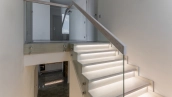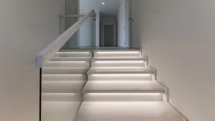 Загородный дом с декоративной подсветкой и большими окнами, 300 м²
