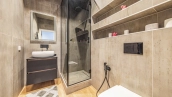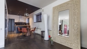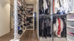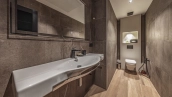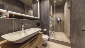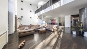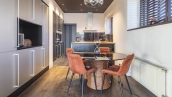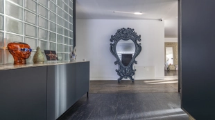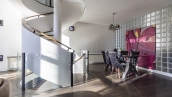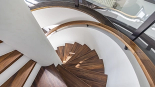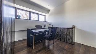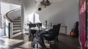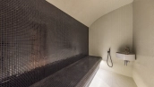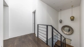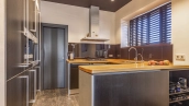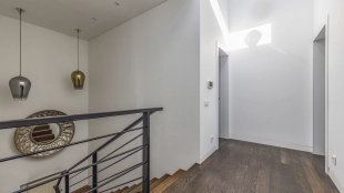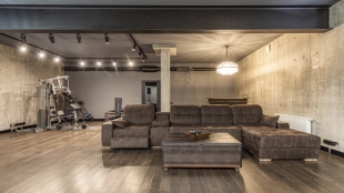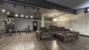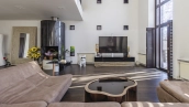 Планировка включает просторную гостиную с камином, плавно переходящую в кухню-столовую, 4 спальни, кабинет с библиотекой и гардеробные для удобного хранения. На цокольном этаже разместили большой зал в стиле лофт со сценой и музыкальным оборудованием, спортзал, сауну и хаммам. Отдельного внимания заслуживает эксплуатируемая кровля, застеленная морской галькой — здесь можно обустроить уютную зону для отдыха на свежем воздухе. Также в контуре дома предусмотрен гараж.