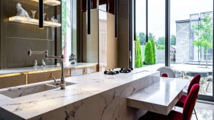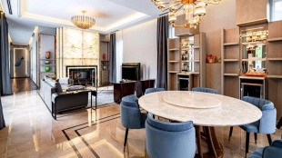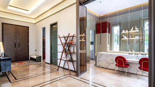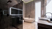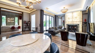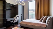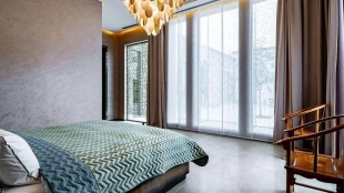 Интерьеры выдержаны в светлых, спокойных тонах и гармонично сочетают фактуры камня и дерева. Дом укомплектован комфортной мебелью, элегантными предметами декора, а различные сценарии освещения позволяют создавать подходящую атмосферу. Для идеального микроклимата предусмотрены системы подогрева пола, канального кондиционирования, приточно-вытяжной вентиляции с рекуператором.