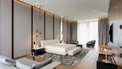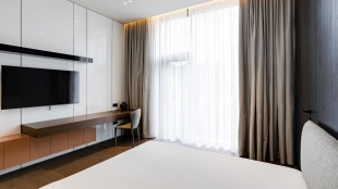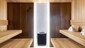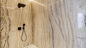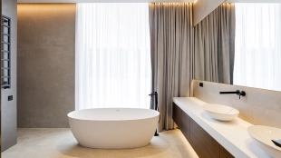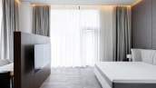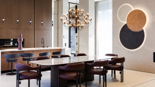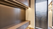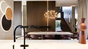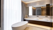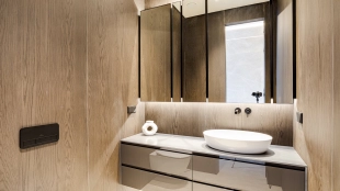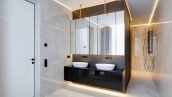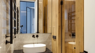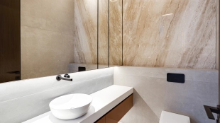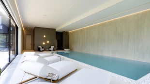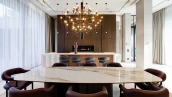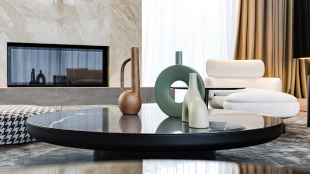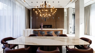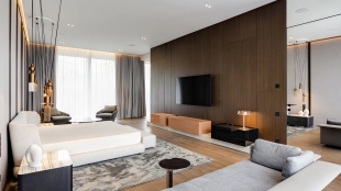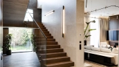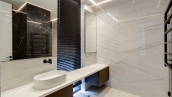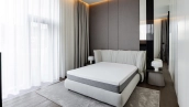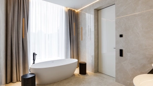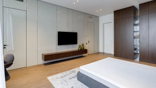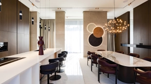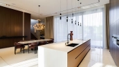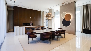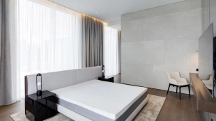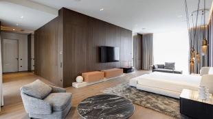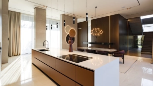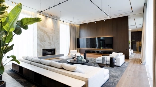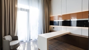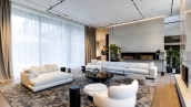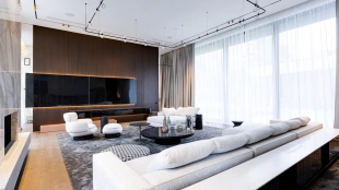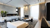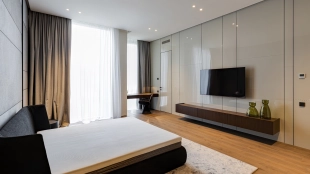 Внутренние пространства оформлены в спокойных, тёплых тонах с использованием премиальных материалов — инженерной доски Finex, натурального камня, мебели от Minotti, Poliform, Meridiani и Cattelan Italia. Техника Miele и Asko, сантехника Hansgrohe, Villeroy & Boch и Salini, а также мягкий текстиль, элегантные предметы декора и светильники Flos, Vibia и Centersvet подчеркивают безупречный вкус и комфорт. Для идеального микроклимата установлена система приточно-вытяжной системой с канальным кондиционированием.