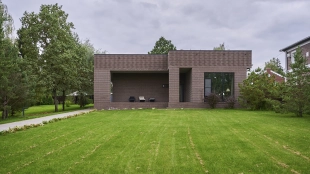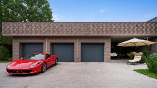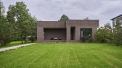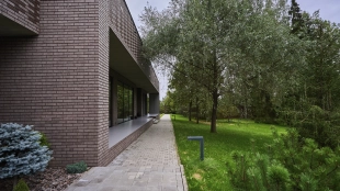 Новый загородный коттедж площадью 500 м² расположен на просторном полевом участке 42,5 сотки в тихой части посёлка. Современный фасад гармонично вписан в ландшафт, облицован клинкерным кирпичом и дополнен подсветкой, эффектно подчеркивающей строгие линии здания в вечернее время.
