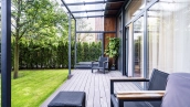 Участки озеленены: засеян газон, высажены туи, а также работает система автополива.