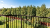 Территория тщательно благоустроена: устроен газон, высажены хвойные и плодовые деревья, подстриженные кустарники образуют аккуратные живые линии, установлена система автополива. В саду можно разместить лаунж-группу и барбекю-площадку — место для отдыха и общения на свежем воздухе.