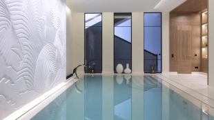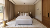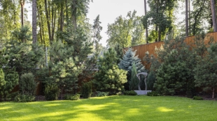 На втором этаже находятся четыре уютные спальни, а на верхнем уровне — мастер-спальня с двумя гардеробными и выходом на террасу. Цокольный этаж превращён в роскошную спа-зону с сауной, хаммамом и переливным бассейном длиной 11 метров. Дополняют инфраструктуру четырёхместный гараж и квартира для персонала. Благоустроенная территория с аккуратным газоном, декоративными кустарниками, мощёными дорожками и мягким освещением создаёт завершённый образ идеального пространства для жизни.