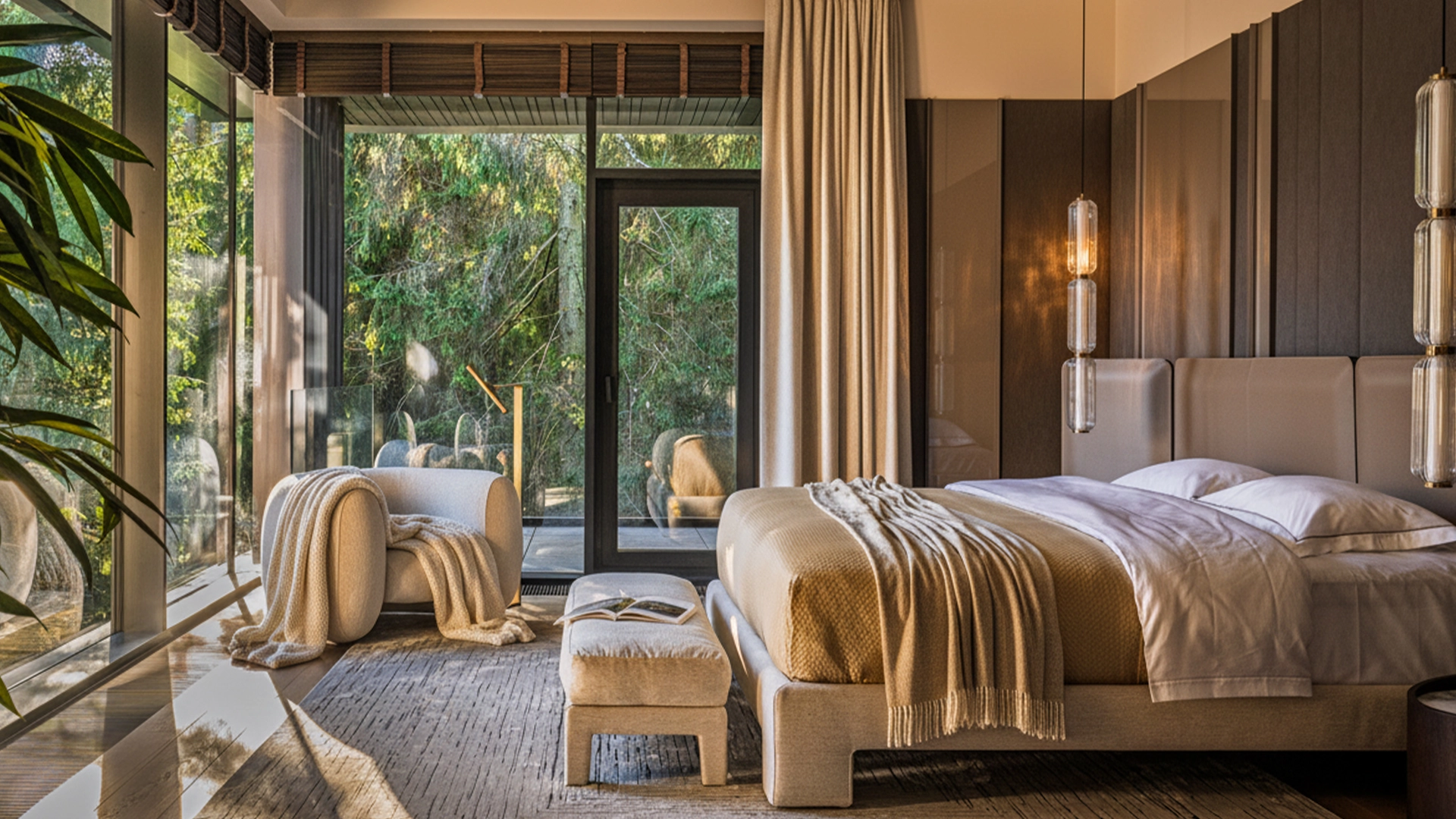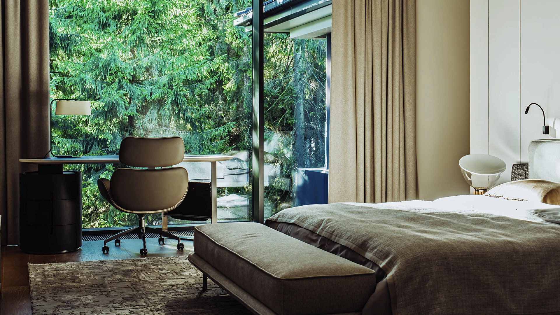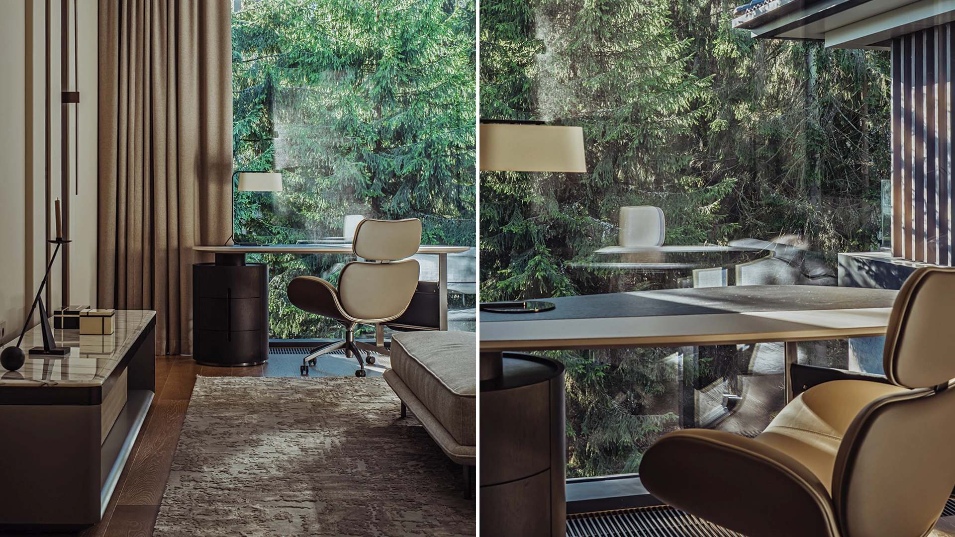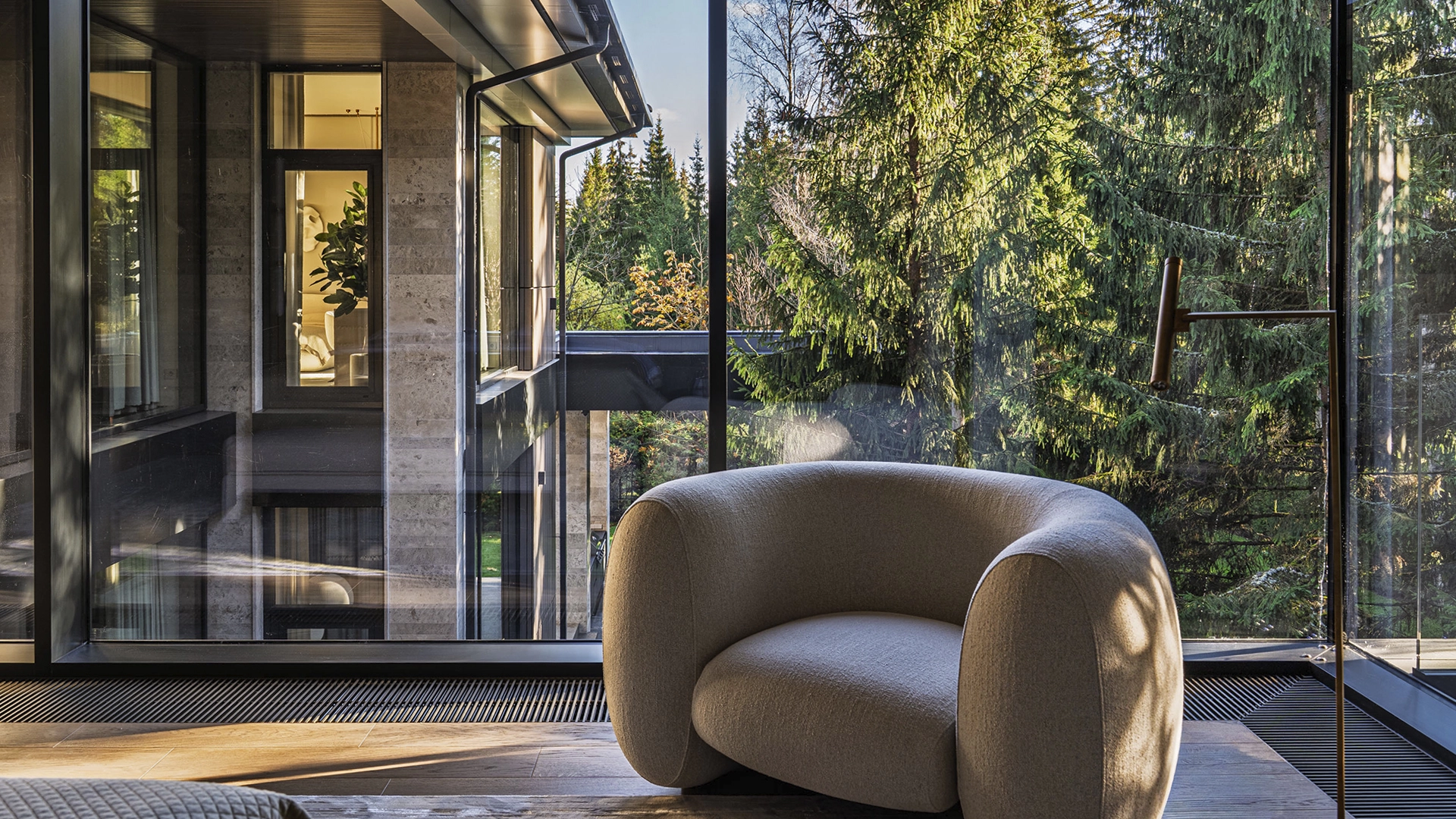 Дома спроектированы с акцентом на простор: высокие потолки, большие окна, свободные планировки. Из окон открываются виды на лес, а внутренние пространства наполнены естественным светом.