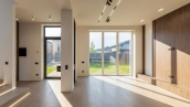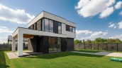 Планировка включает просторную гостиную, объединённую с кухней-столовой, террасу, вместительные гардеробные и четыре спальни. Одна из них легко трансформируется в кабинет для работы и творчества. Участок с ровным свежескошенным газоном и аккуратной дорожкой можно дополнить уютной беседкой для барбекю или детскую площадку для активных игр на свежем воздухе.