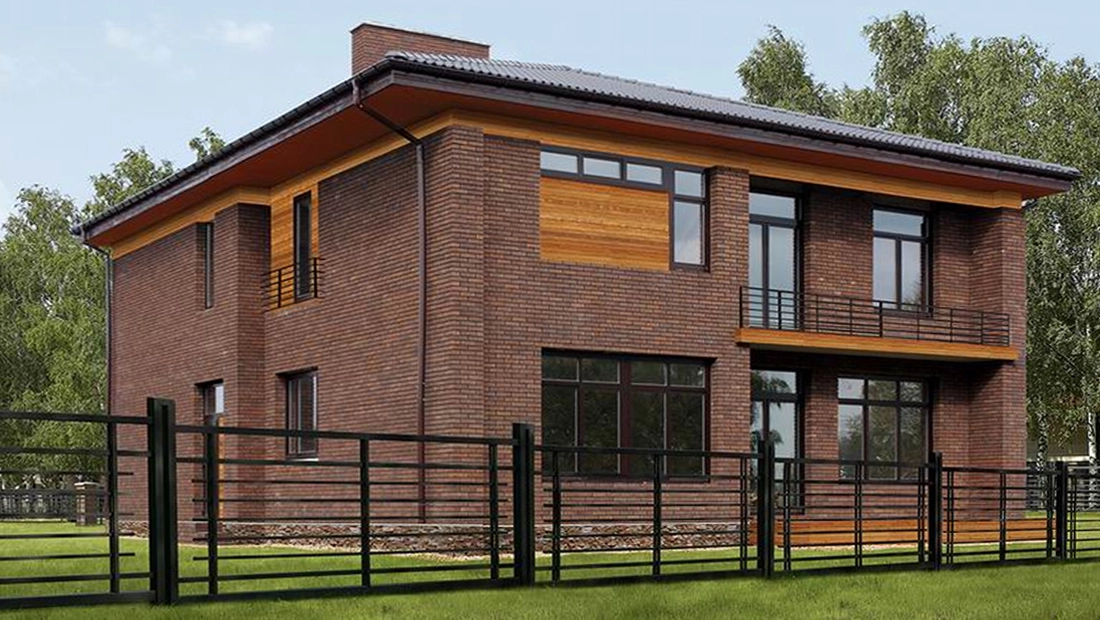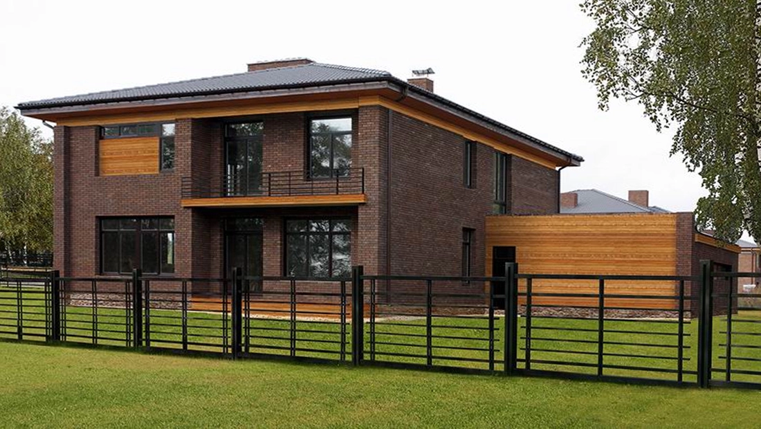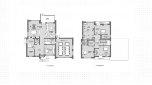 Загородный дом с 3-мя спальнями и встроенным гаражом на 2 автомобиля построен на открытом участке 23 сотки в верхней части поселка. На первом этаже семейная гостиная, кабинет и гараж. Второй этаж занимают три спальни с выходом на два балкона. Общая площадь дома 430 м².