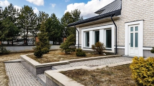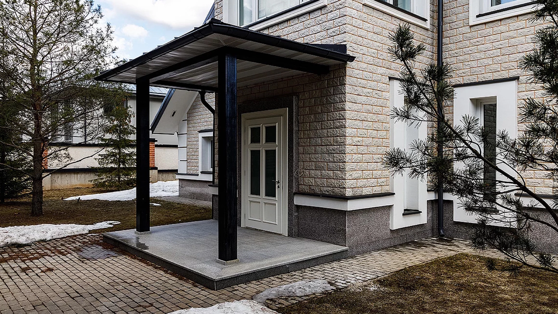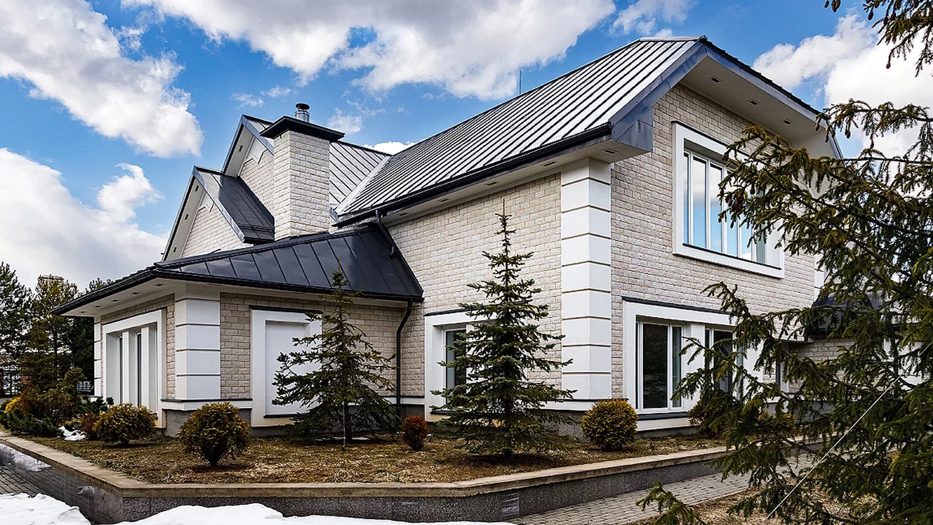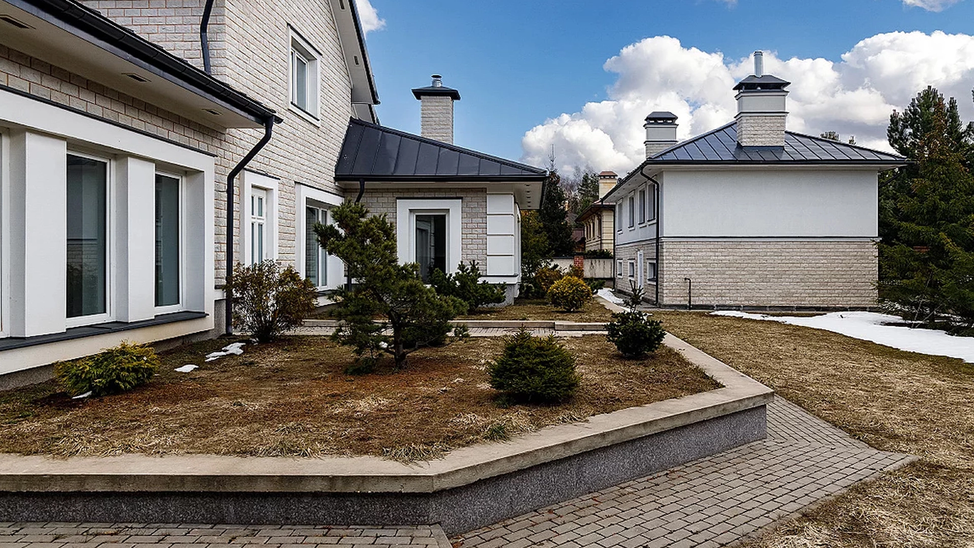 Двухэтажная резиденция в американском стиле 759 м² и гостевой дом 169 м² расположены на полевом участке 24,5 соток с ландшафтным дизайном. Фасад главного дома облицован белой фасадной плиткой и украшен белой рустовкой. Интерьер выполнен «под ключ» в стиле современной классики — в гостиной расположен камин, на полу натуральное дерево. Санузлы облицованы керамогранитом и дополнены сантехникой. В доме 5 спален. Благодаря большим окнам, все комнаты очень светлые. Около резиденции построили гостевой дом с 2-мя спальнями, кухней и гаражом для 2 машин на первом этаже. На участке выполнили ландшафтные работы, дорожки вымостили тротуарной плиткой, посадили многолетние хвойные кустарники и ели по границе участка.