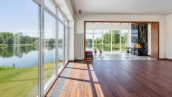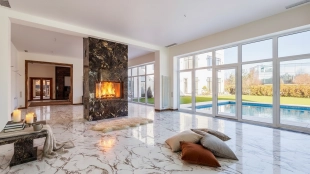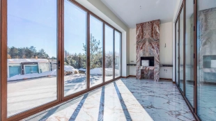 Загородный дом с камином и открытым бассейном на берегу озера, 1 150 м²