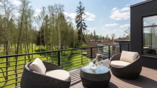 В продаже коттеджи площадью от 1500 м² и таунхаусы от 900 м². Все дома выполнены в едином архитектурном стиле и подходят для постоянного проживания.