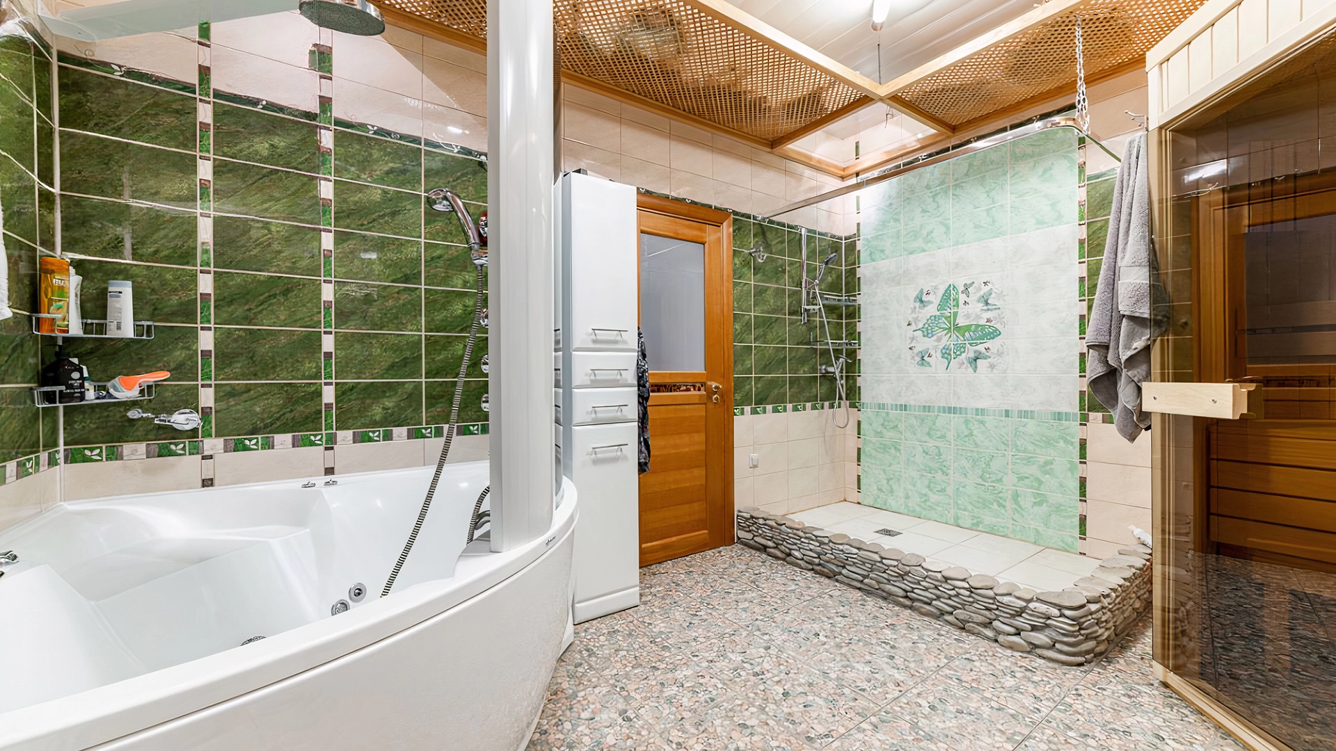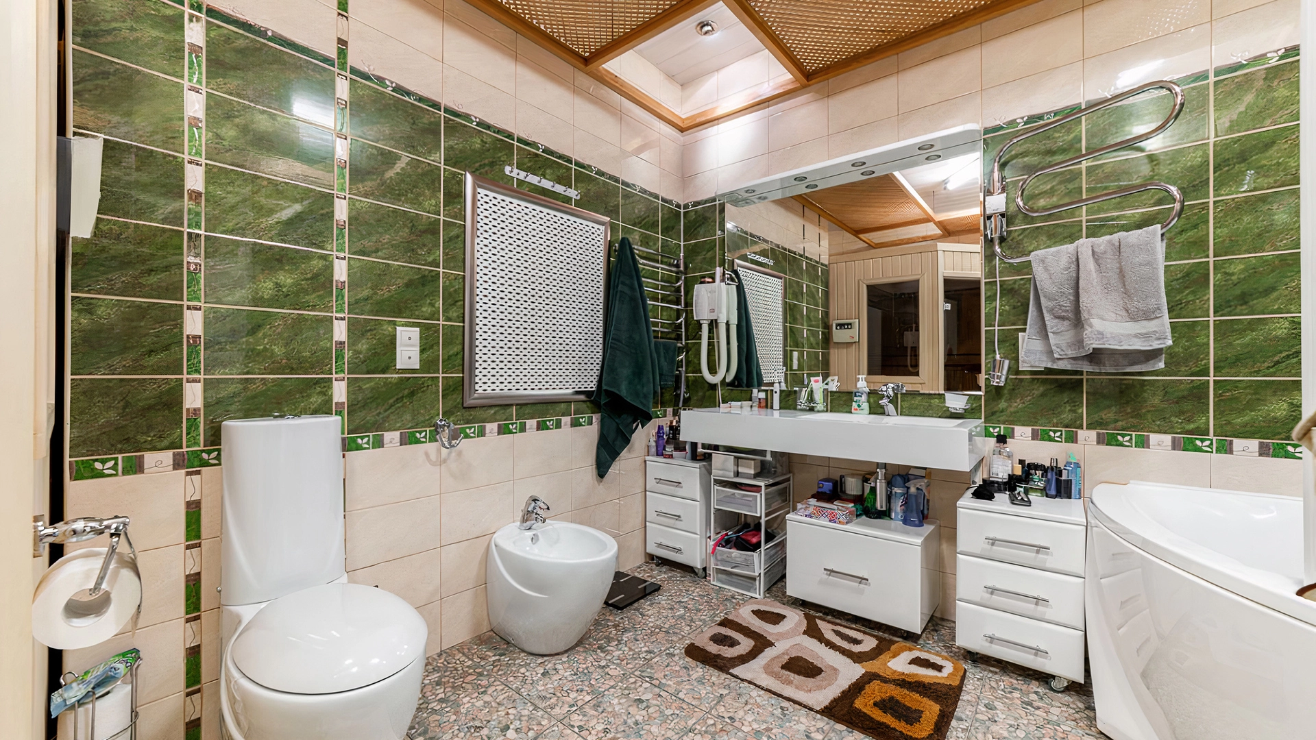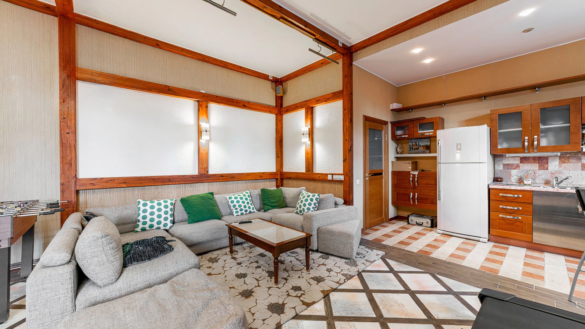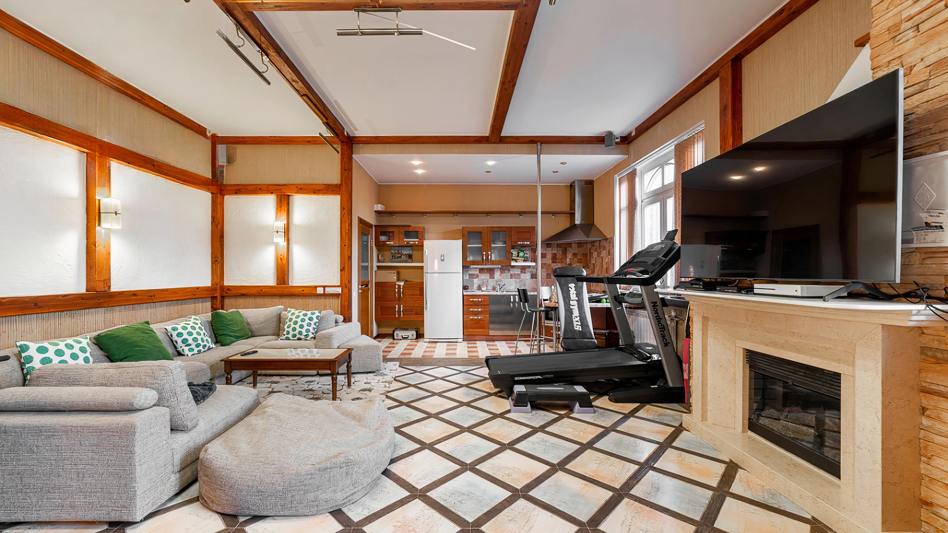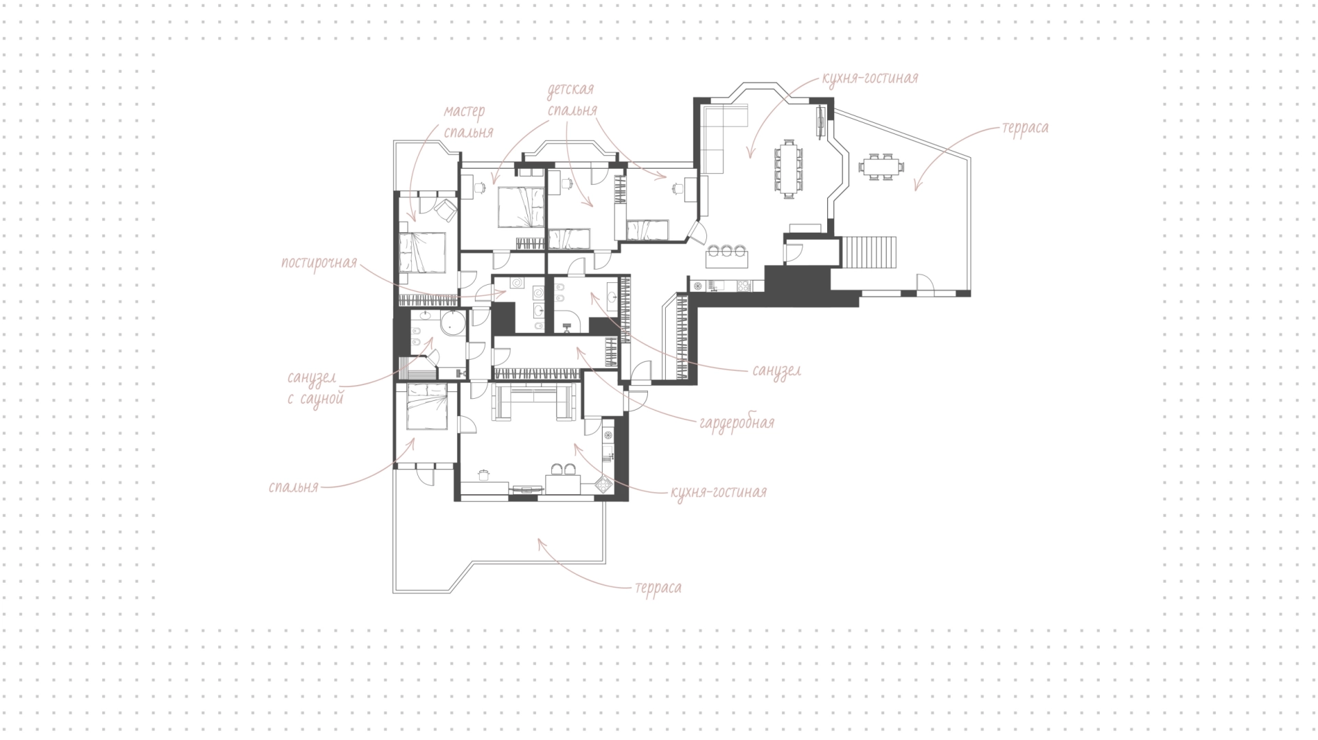 Спланирована кухня-гостиная с обеденной зоной и выходом на большую террасу, 5 спален, комната отдыха с дополнительной кухней, барной стойкой и спортивным