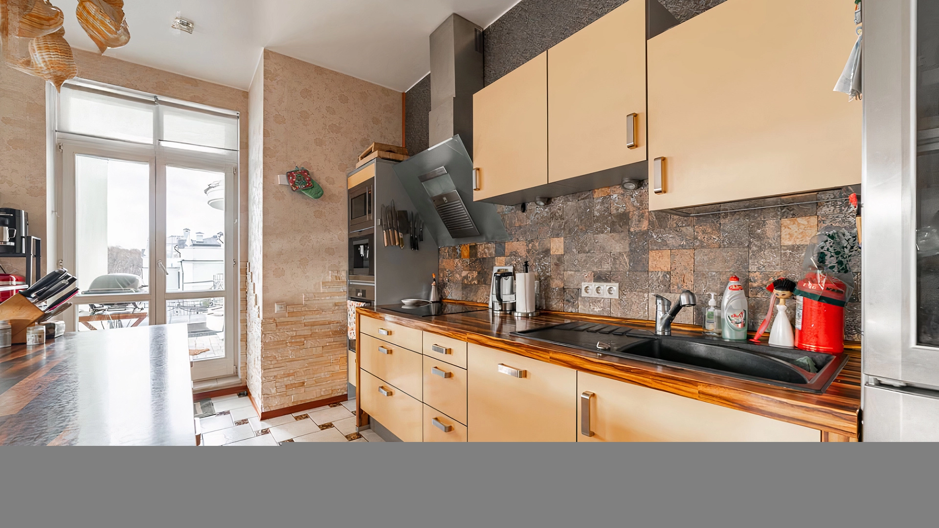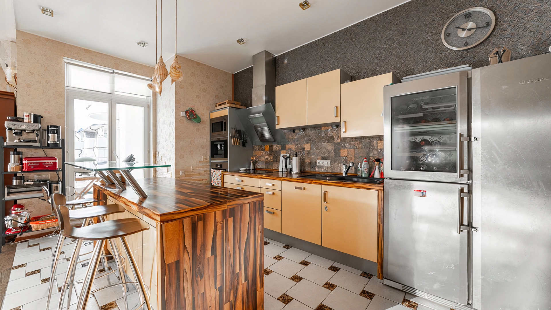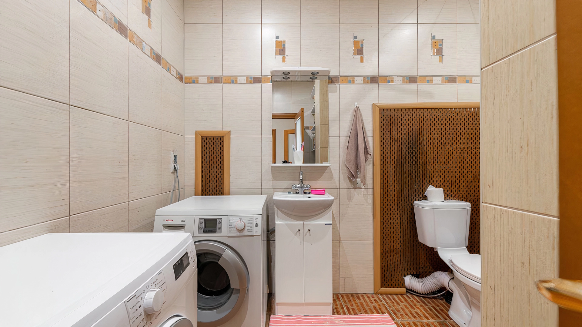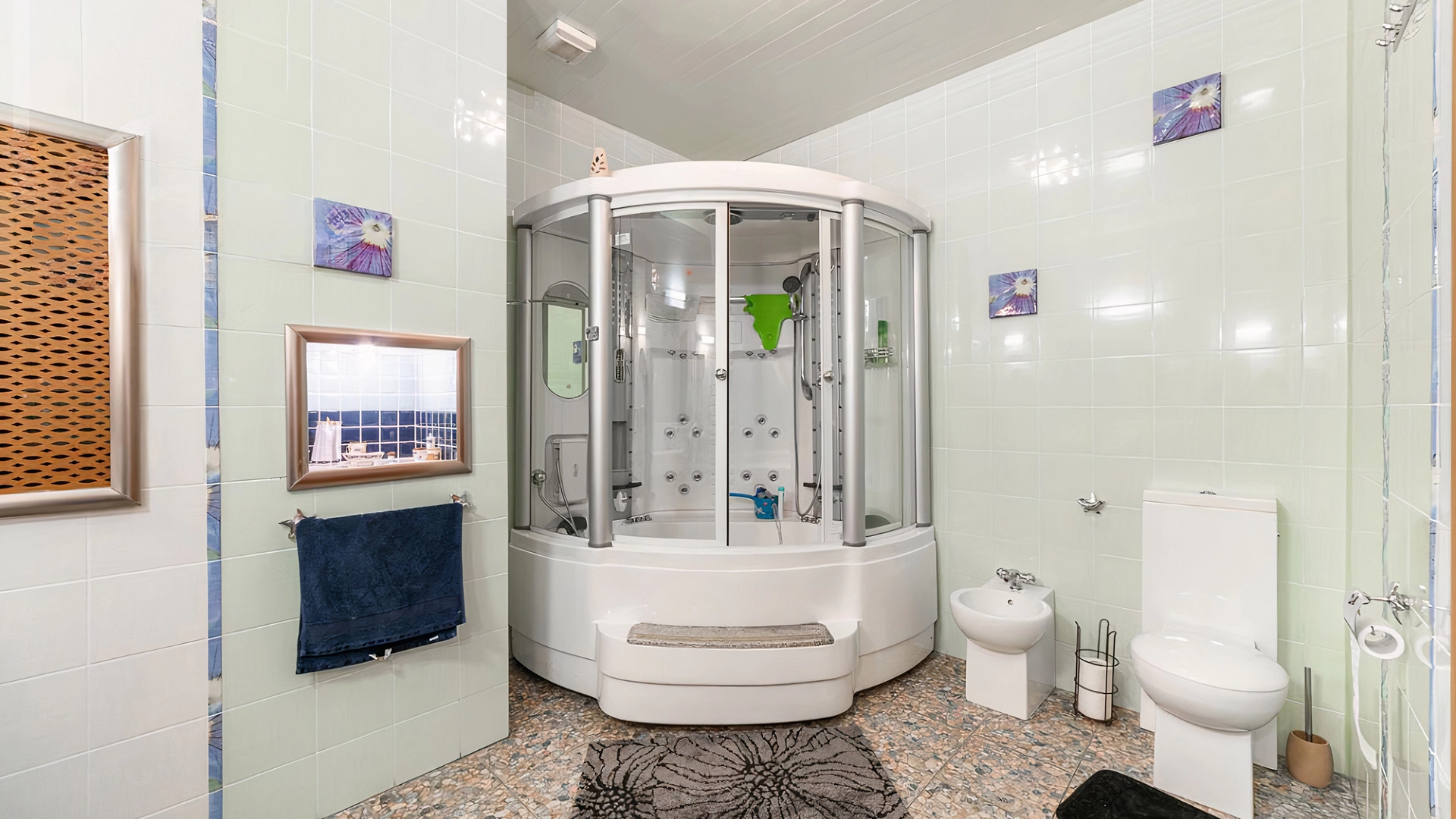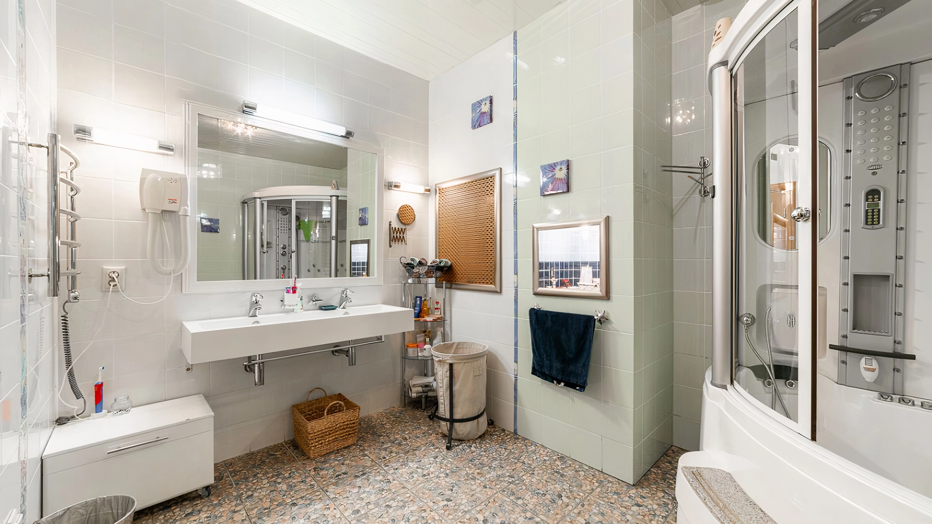 инвентарем, большая проходная гардеробная, ванная комната с сауной, санузел с душевой, гостевой санузел с постирочной, прихожая, лоджия, балкон, вторая терраса. Квартира меблирована, укомплектована бытовой техникой. Установлена система кондиционирования, подогрев полов, бойлер. Предусмотрено машиноместо в подземном паркинге за дополнительную плату.