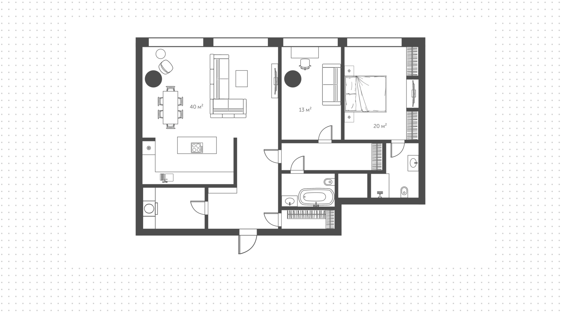 Квартиры c 2 спальнями, 112 м² в ЖК Четыре ветра, 3 этаж
