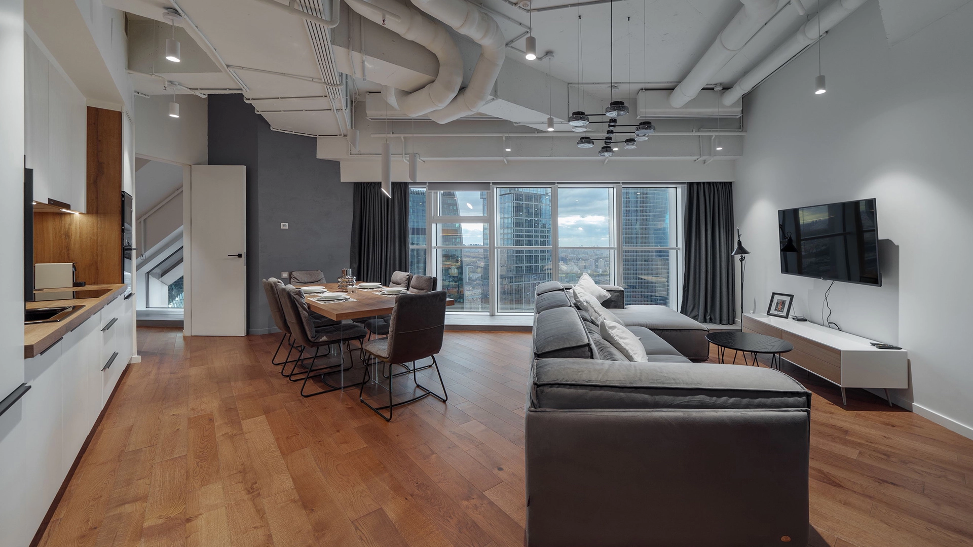 Просторный апартамент с 2-мя спальнями общей площадью 118 м² в башне «Меркурий» в деловом центре «Москва-Сити». Выполнена премиальная отделка в современном стиле. Благодаря панорамным окнам пространство наполнено светом, открываются виды на «Москву-Сити». Спланирована кухня-гостиная с обеденной зоной, 2 спальни, ванная комната, санузел с душем, огромная гардеробная. Апартаменты полностью меблированы и укомплектованы бытовой техникой, установлена система кондиционирования.