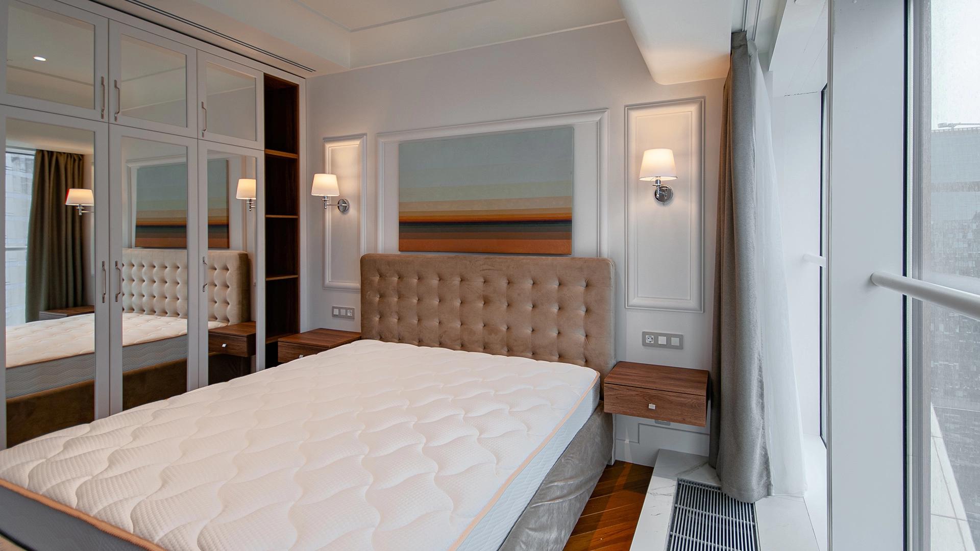 Уютные апартаменты с 1-й спальней общей площадью 74 м² в башне «Меркурий» на 42-м этаже. Выполнена светлая отделка, интерьер оформлен в стиле современной классики. Спланирована кухня-гостиная, спальня, ванная комната, гардеробная. Апартамент полностью укомплектован мебелью и бытовой техникой. Установлена система кондиционирования, посудомоечная и стиральная машина. Из панорамных окон открываются живописные виды на город.