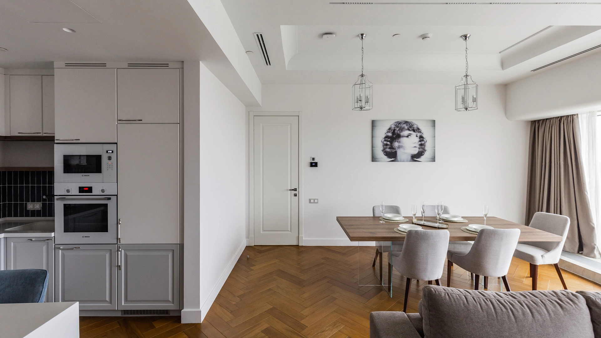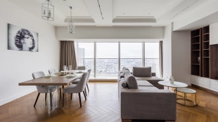 Видовые апартаменты с 1-й спальней общей площадью 90 м² в башне «Меркурий» на 42-м этаже. Выполнена премиальная отделка в светлых тонах, интерьер оформлен в современном стиле. Спланирована просторная кухня-гостиная, уютная спальня, ванная комната, гардеробная. Апартамент полностью укомплектован мебелью и бытовой техникой. Установлена система кондиционирования, посудомоечная и стиральная машина. Из панорамных окон открываются живописные виды на город.