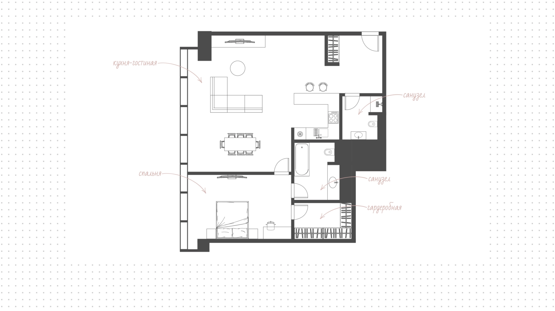 Апартаменты c 1 спальней, 90 м² в ЖК Меркурий, 42 этаж