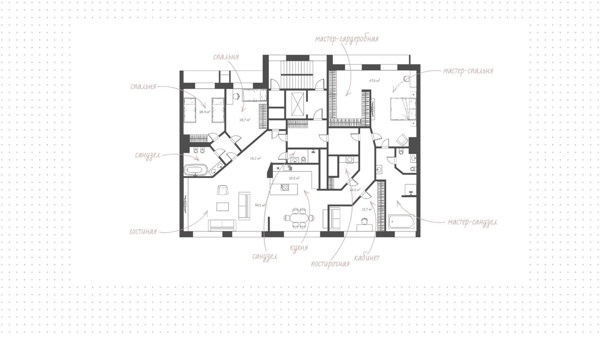 Квартиры c 3 спальнями, 270 м² в ЖК Дом на Гашека, 3 этаж