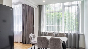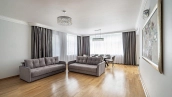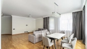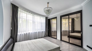 Спланирована гостиная-столовая с зоной кухни, мастер-спальня с собственной гардеробной и санузлом, 2 спальни, санузел с душевой, гардеробная, холл. Квартира меблирована и оборудована бытовой техникой. Вывоз и докупка мебели обсуждается под арендатора. Установлена приточно-вытяжная система вентиляции и кондиционирование. Предусмотрен гараж на 3 машиноместа.