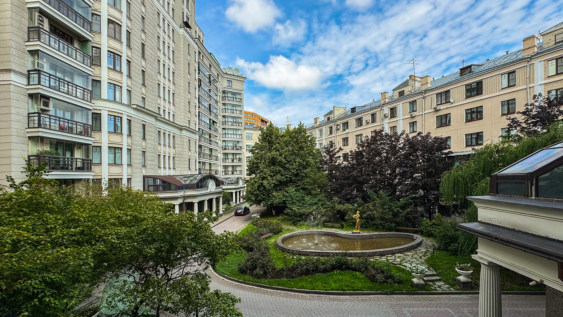 Планировка: просторная гостиная, 2 спальни, кабинет, 3 санузла, гардеробная, зимний сад, лоджия. Установлена приточно-вытяжная система вентиляции и кондиционирования. Из окон открывается вид в благоустроенный внутренний двор с фонтаном и на тихую улицу. Машиноместо в подземном паркинге за отдельную стоимость.