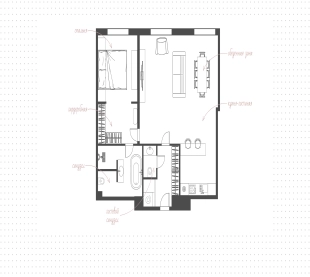 Квартира c 1 спальней, 76 м² в ЖК TURGENEV, 2 этаж
